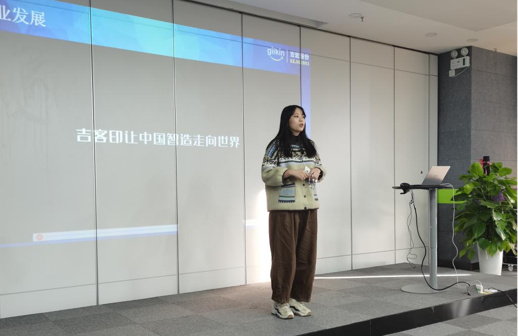 随后,在公司会议室,由公司人事经理刘昱君详细介绍了吉客印的发展历史、公司架构、主营业务,以及目前业务推进区域,未来发展规划等情况。尤其对于吉客印校园招聘日语相关岗位和职位需求进行了详细的说明。