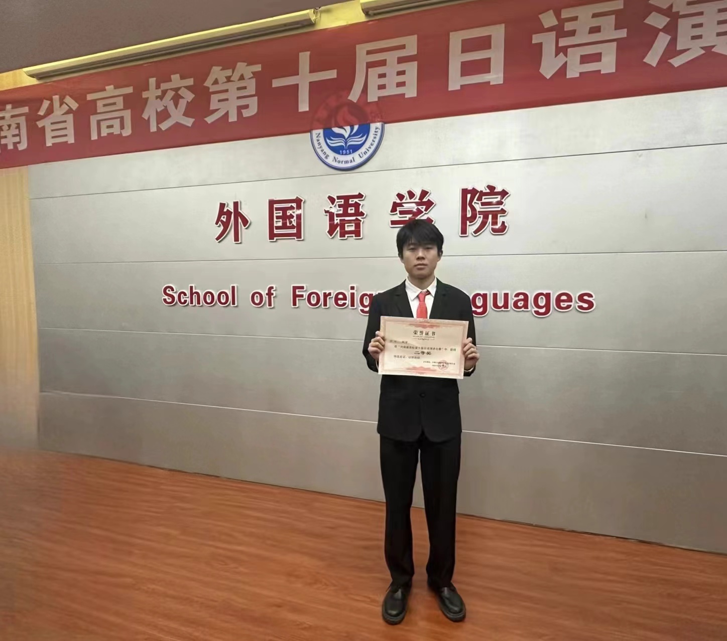 本次演讲比赛由中国日语教学研究会河南分会主办,南阳师范学院承办。经过各高校校内初选,共有包括河南大学、河南师范大学、河南科技大学、河南农业大学等省内19所高校的38位选手来到决赛现场。公司2022级日语2班崔昊宇和张硕两位同学以优异的成绩通过校内初选,在指导老师王欣老师的带领下,代表公司参加决赛。