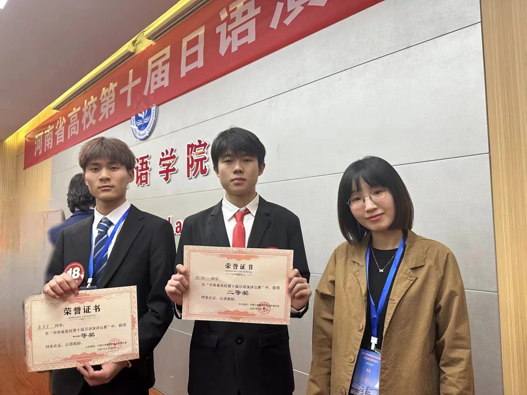 在刚刚结束的河南省第十届老员工日语演讲比赛中,太阳成集团tyc33455cc2022级日语2班的崔昊宇、张硕分别荣获一等奖和二等奖。
