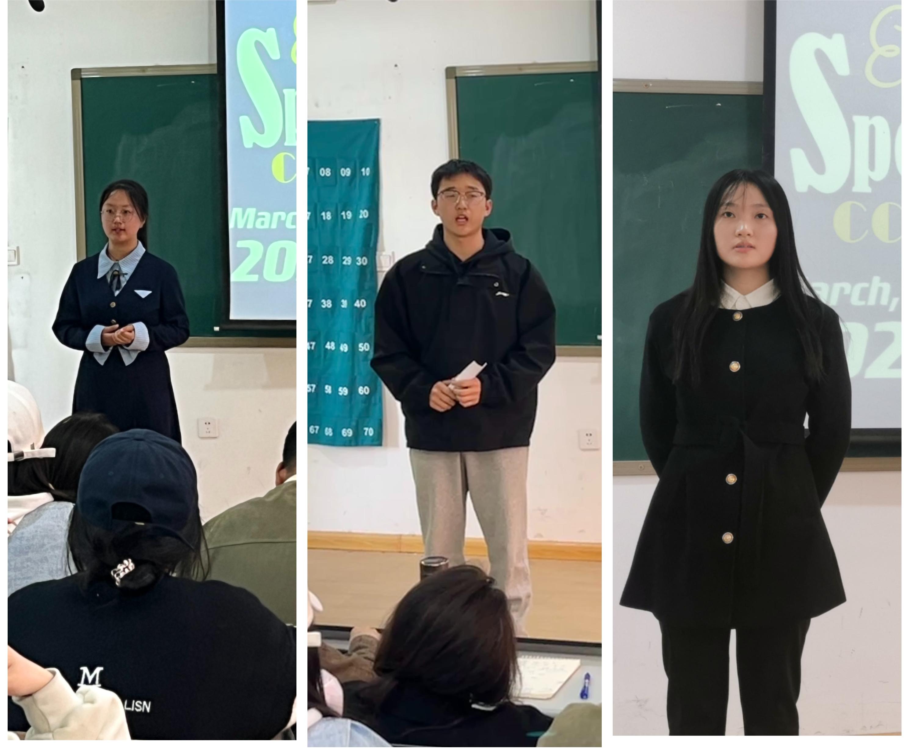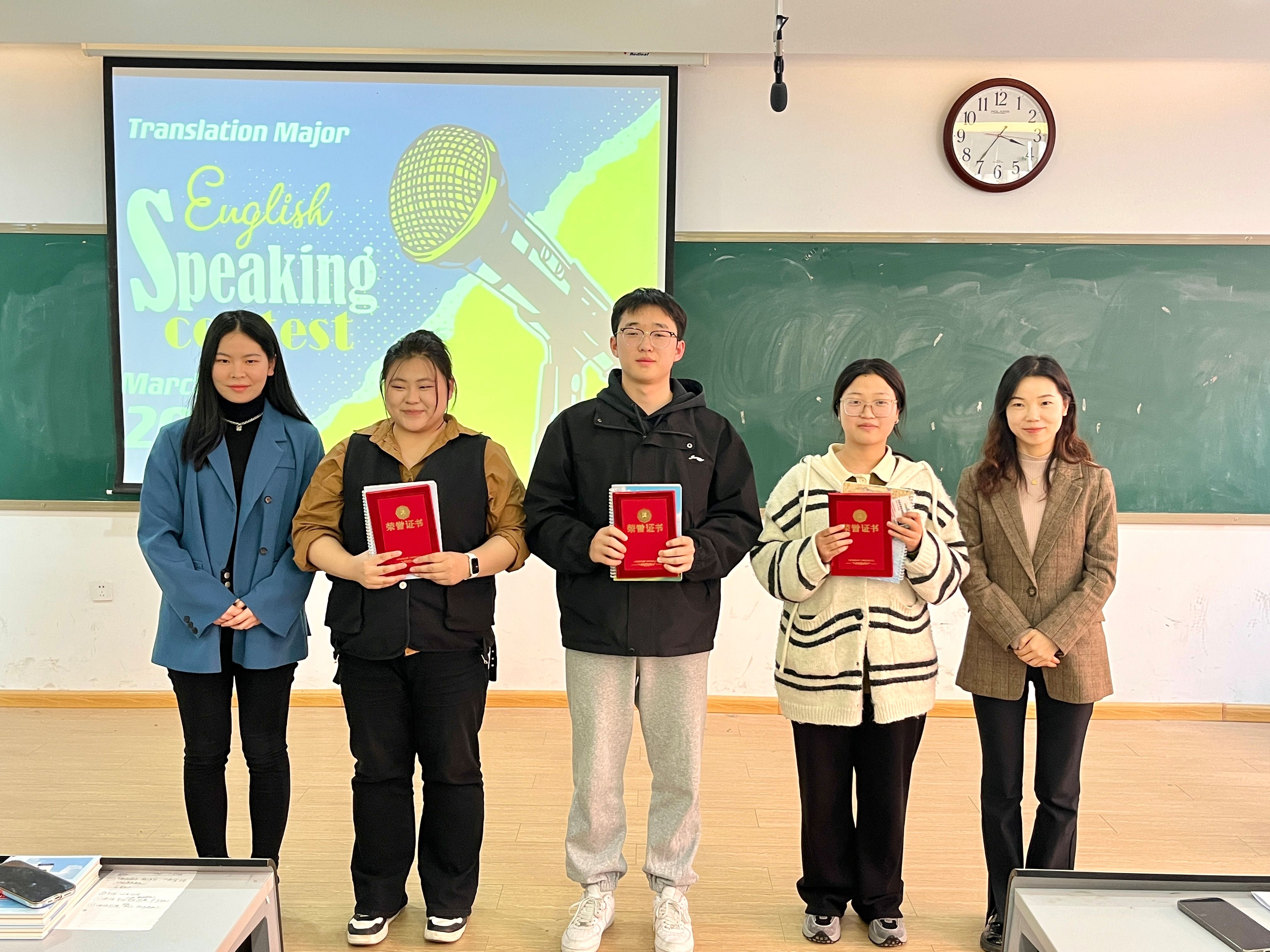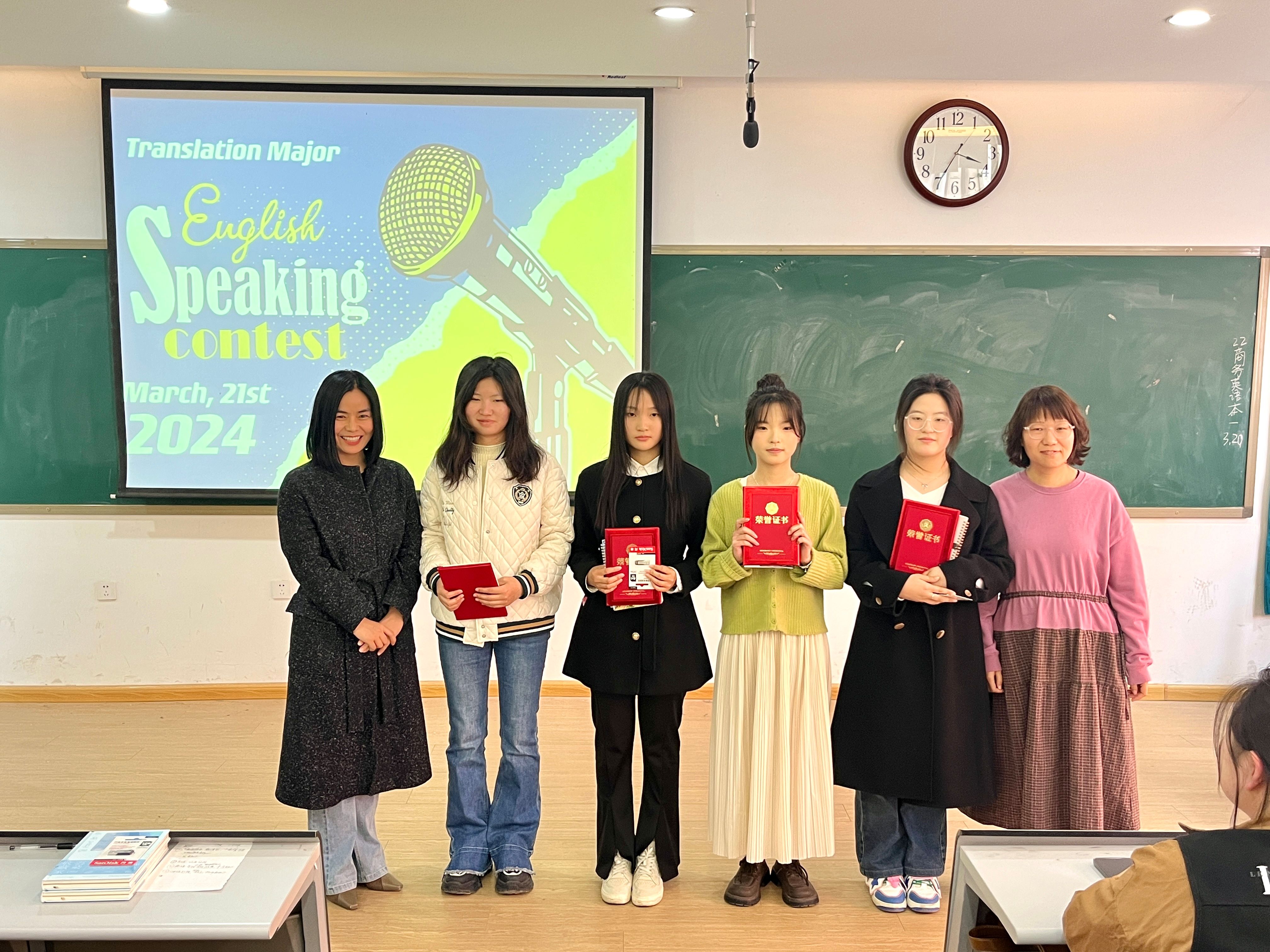 通过激励的角逐,22级翻译1班申思雨同学和22级翻译2班王媛媛同学荣获一等奖;21级翻译1班郭佳琪同学、21级翻译1班王嘉啟同学和23级翻译1班邵星茹同学荣获二等奖;21级翻译2班李旭聪同学、22级翻译2班王君霞同学、22级翻译1班李笑丹同学和22级翻译1班张佳怡同学荣获三等奖。