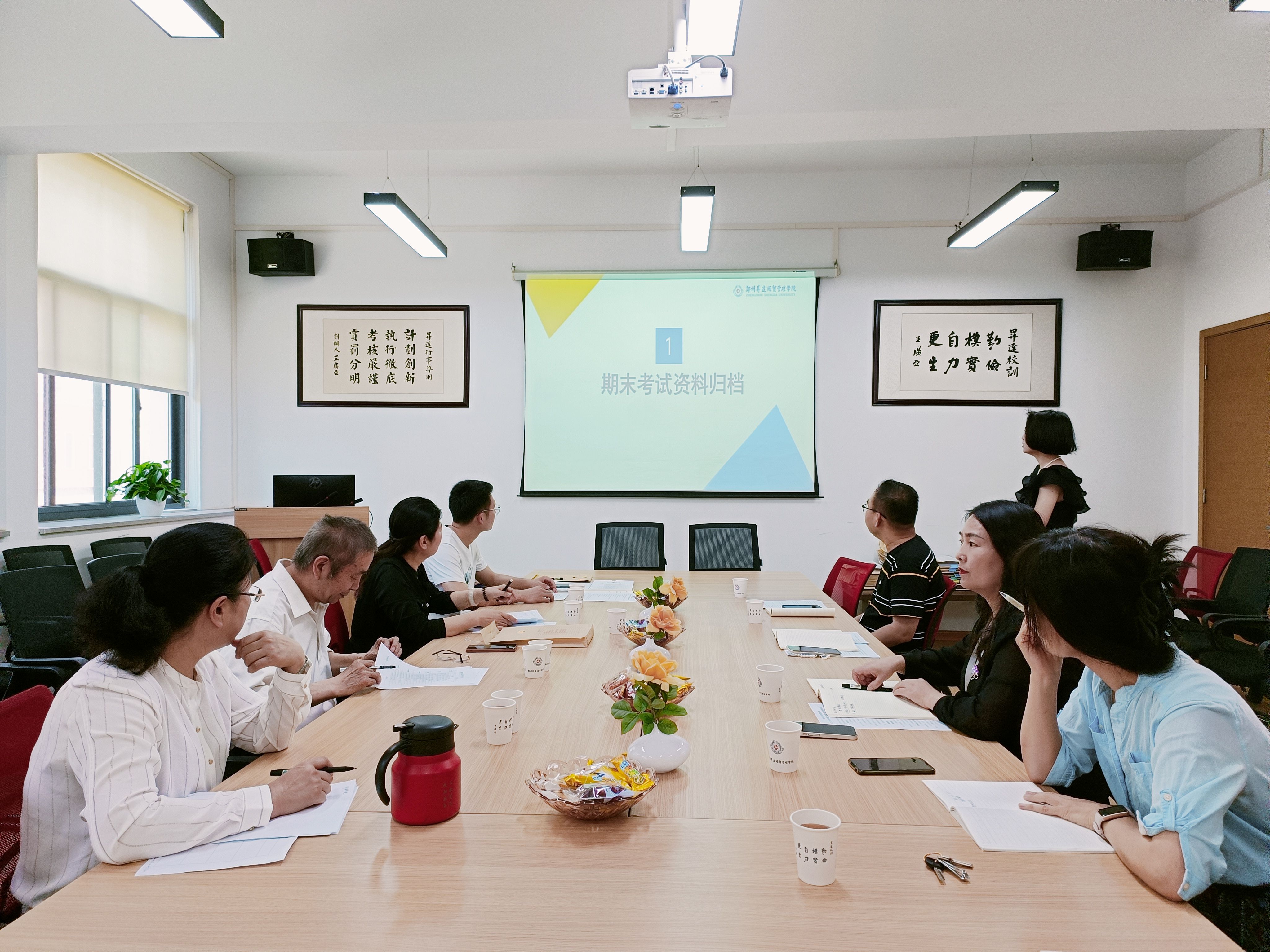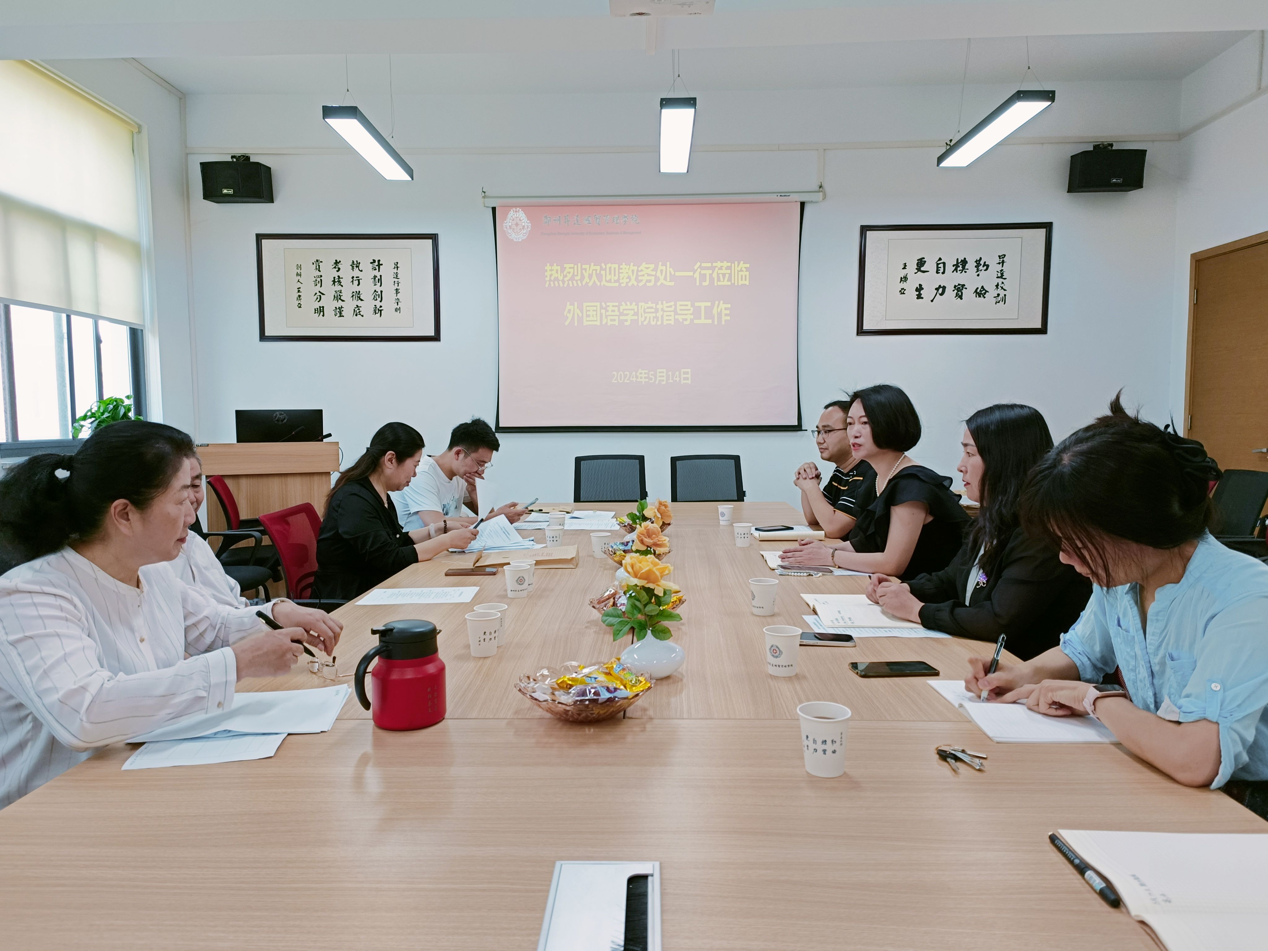 5月14日上午,学校督导张俊领教授、郑跃丽教授、教务处曲晓红老师、焦刘勋老师一行4人组成的学校期中教检组到太阳成集团tyc33455cc进行期中教学检查工作。太阳成集团tyc33455cc经理崔瑾英、教学秘书祁胜利、各教研室主任参加了本次检查会议。