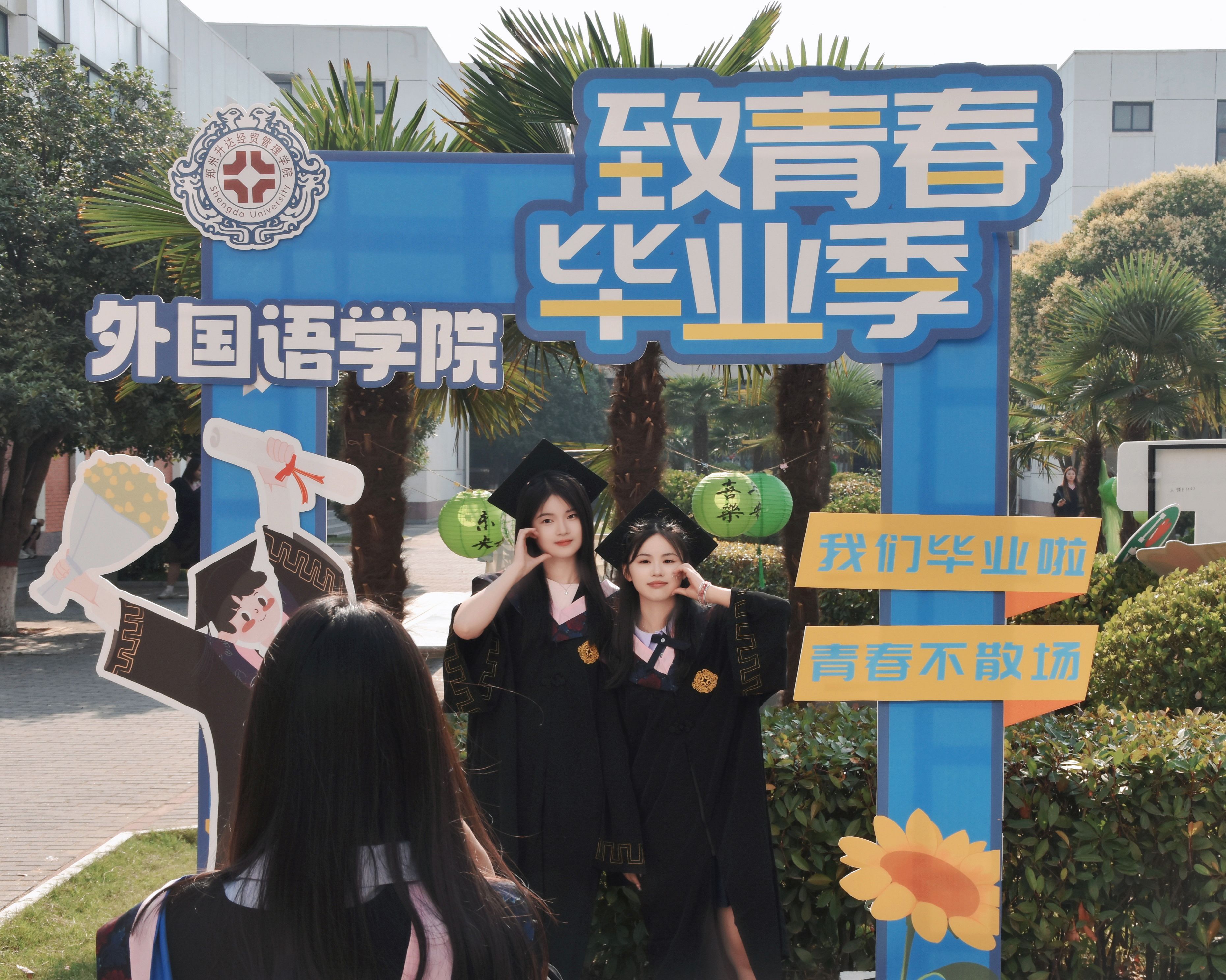 太阳成集团tyc33455cc迎来了一年一度的毕业季。在这个充满离别与希望的季节里,太阳成集团tyc33455cc团委特制作照片墙并设置毕业寄语板等,开展毕业季活动,学子们纷纷在留言板上留下寄语,在照片墙边留下自己的身影,他们用青春在达园里书写着最美的诗行。“青春须早为,岂能长少年。他们曾携书卷,共赴知识的海洋,探寻真理的宝藏。而今,羽翼渐丰,即将展翅翱翔。他们曾在这里,沐浴着知识的阳光,感受着语言的魅力,如今即将带着满满的收获,踏上新的征程。