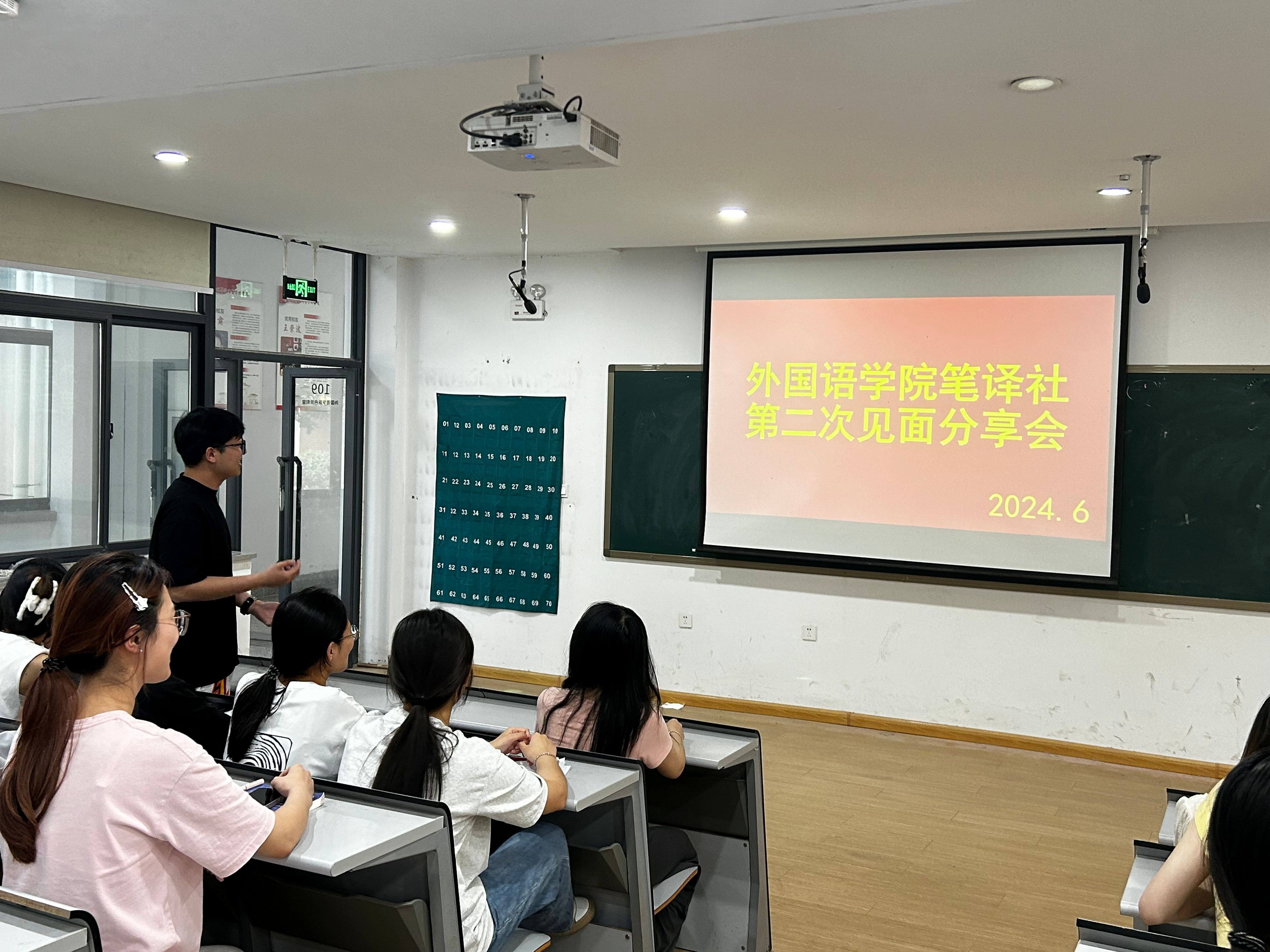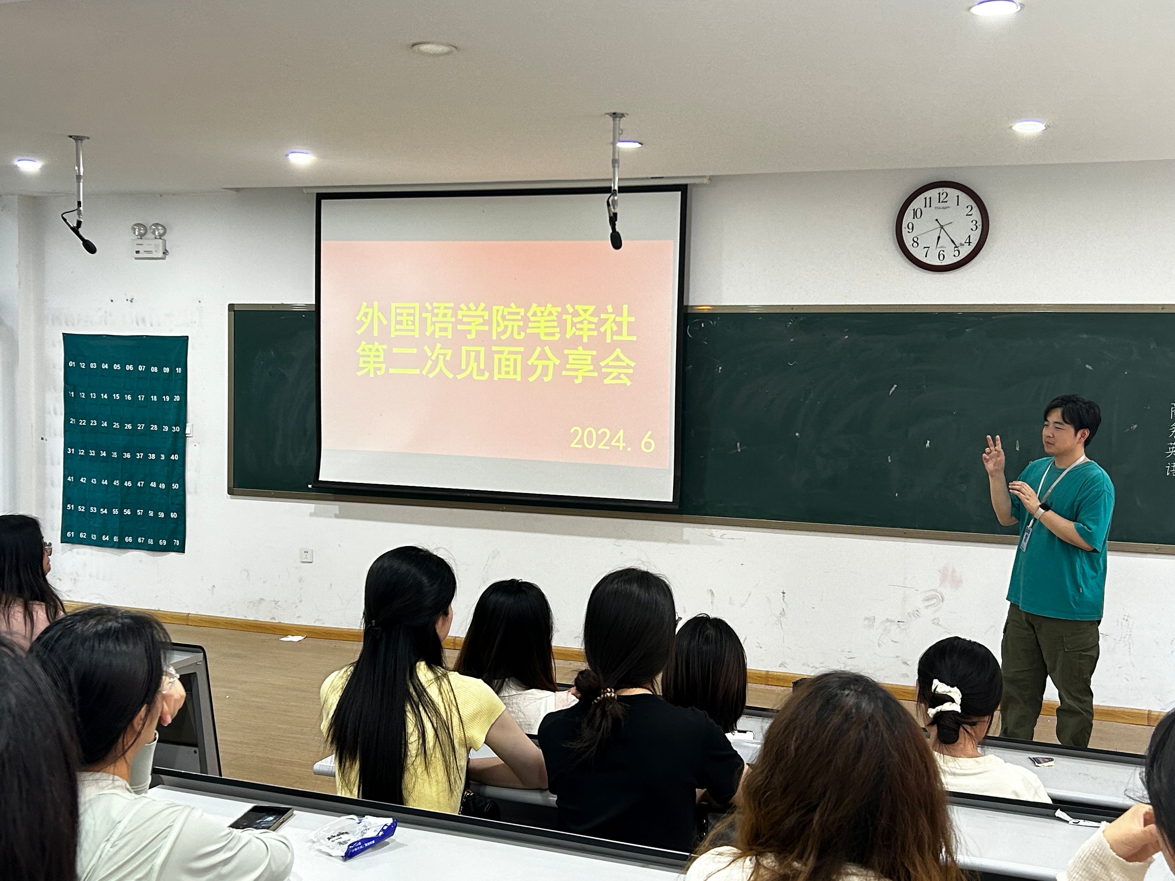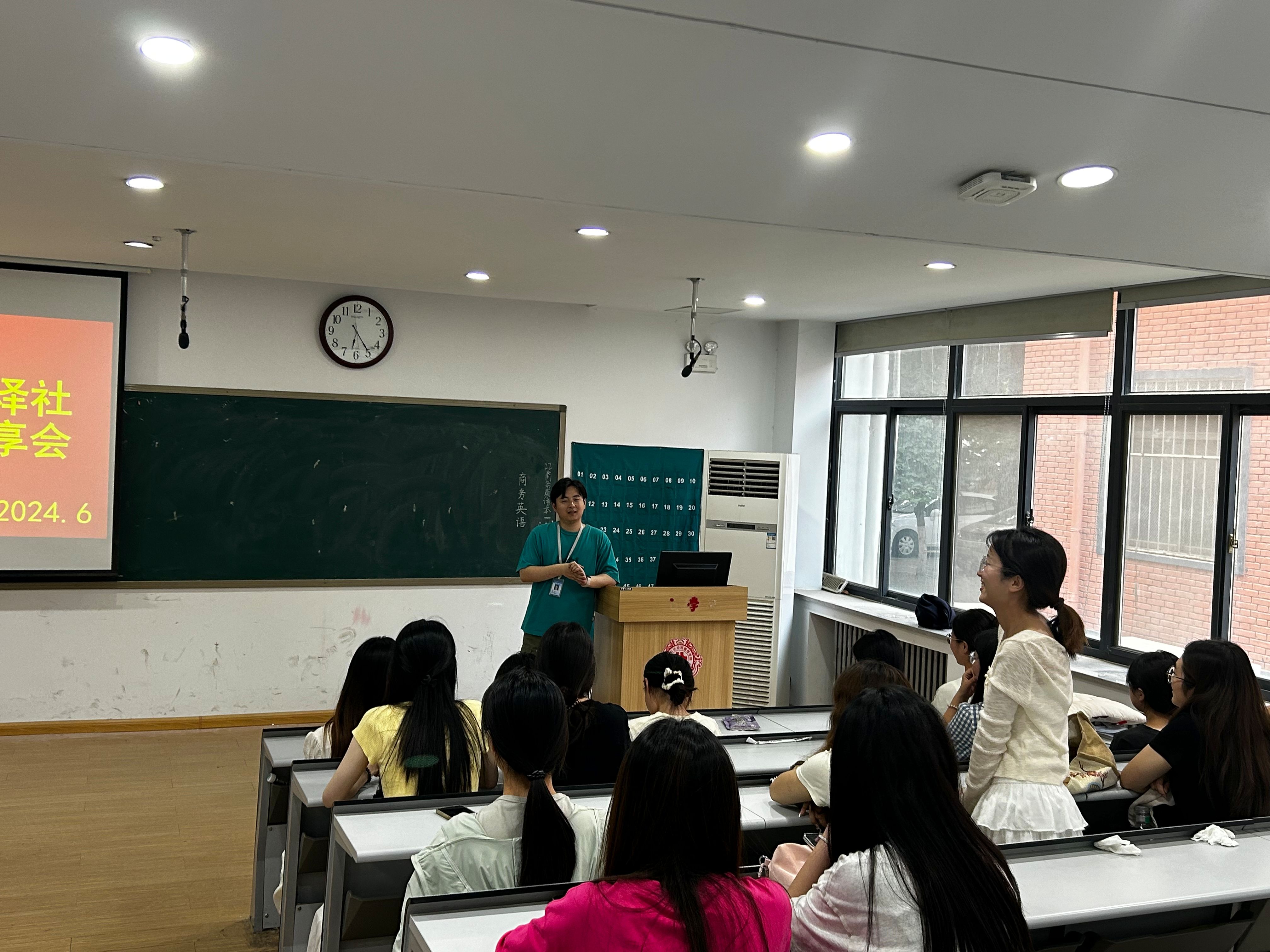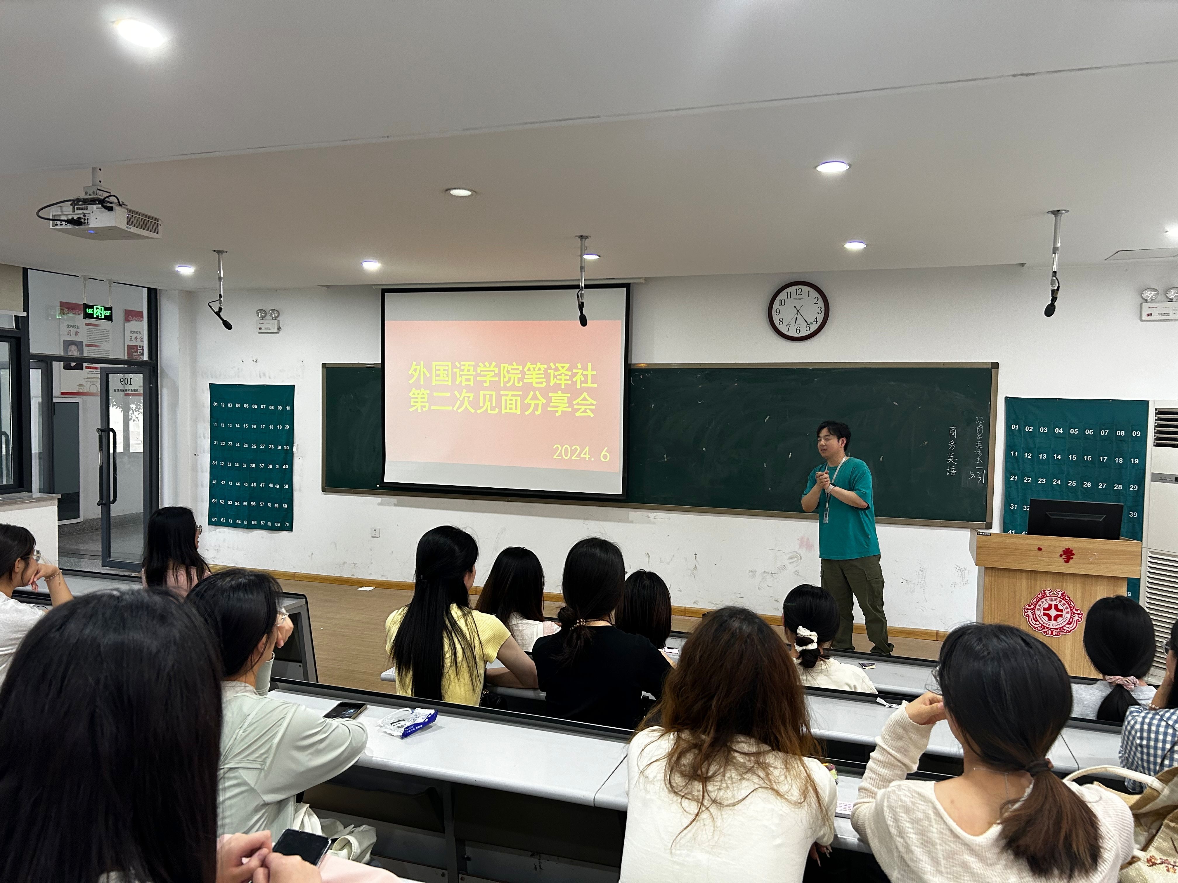 阳光明媚,万物生长,在这个收获的季节里,太阳成集团tyc33455cc笔译社第二次见面分享会于2024年6月6日下午在教一楼109顺利召开。笔译社指导老师王明伟主持本次分享会,翻译笔译社全体成员参加。