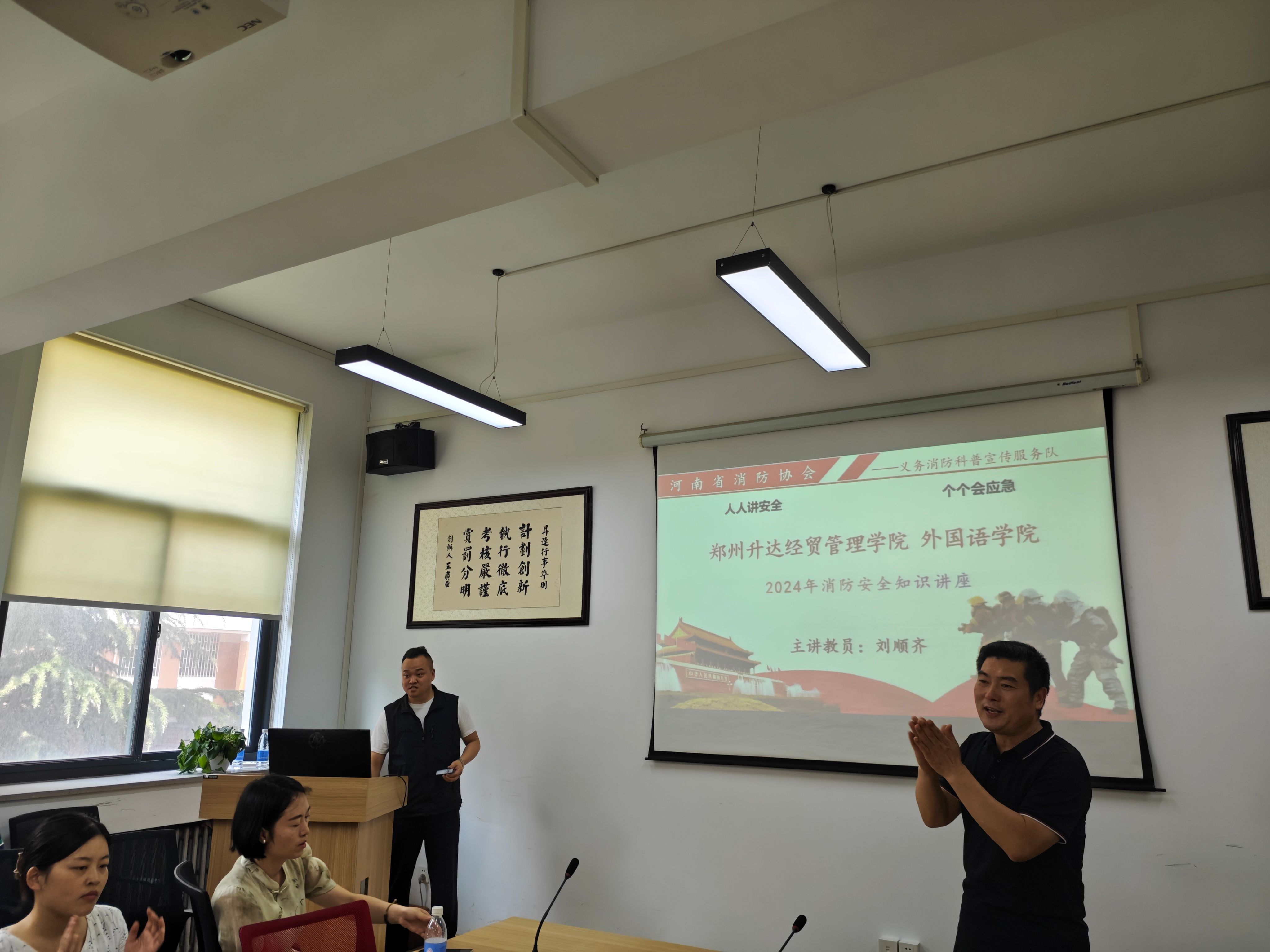2024年6月20日下午2点,太阳成集团tyc33455cc在1-206会议室举办了一场别开生面的消防安全知识讲座,太阳成集团tyc33455cc全体教职工聆听了此次讲座。此次活动特邀河南省消防协会资深教员刘顺奇担任主讲嘉宾,旨在提高教师们的消防安全意识,增强应对火灾等突发事件的自救互救能力。