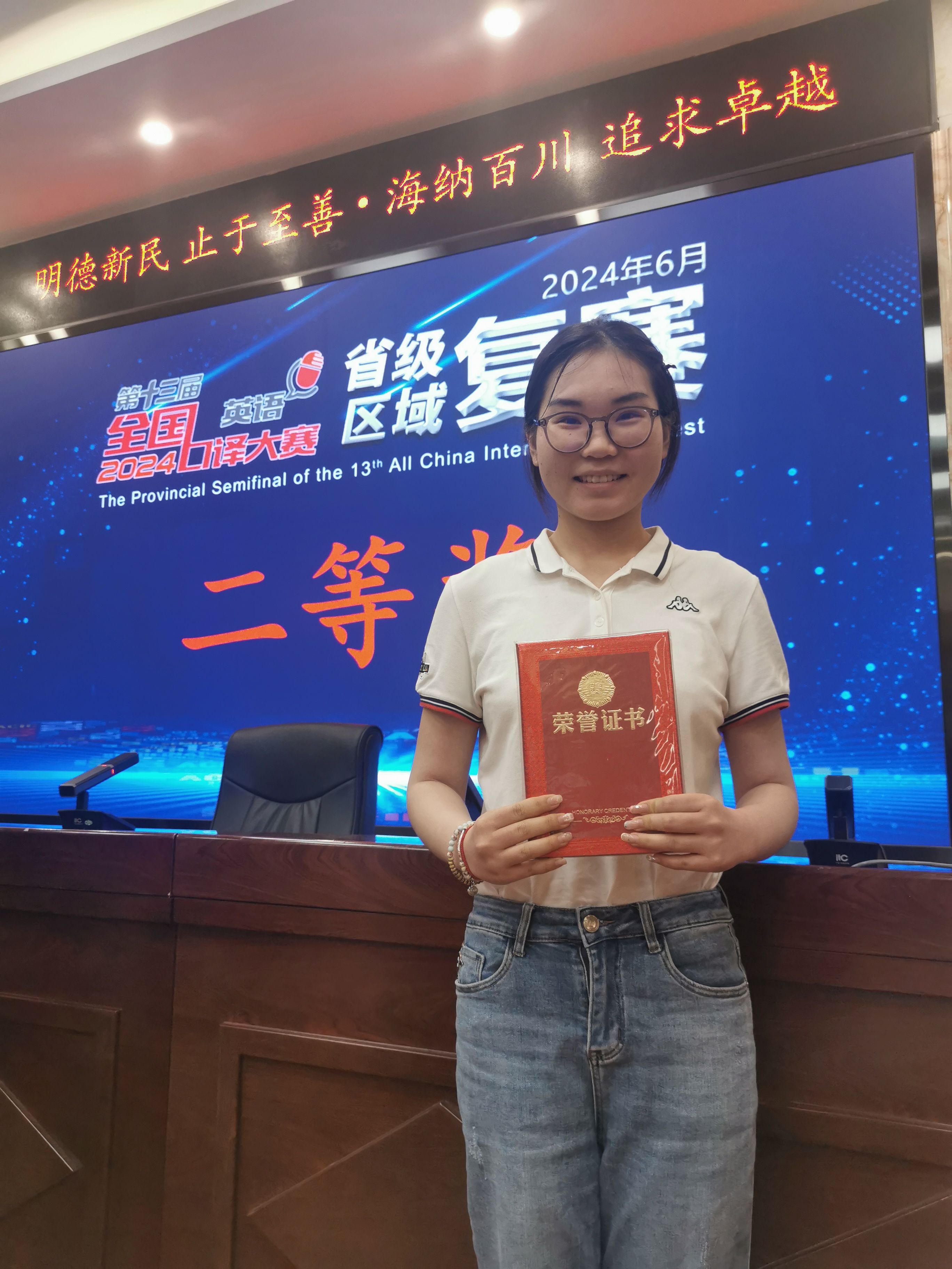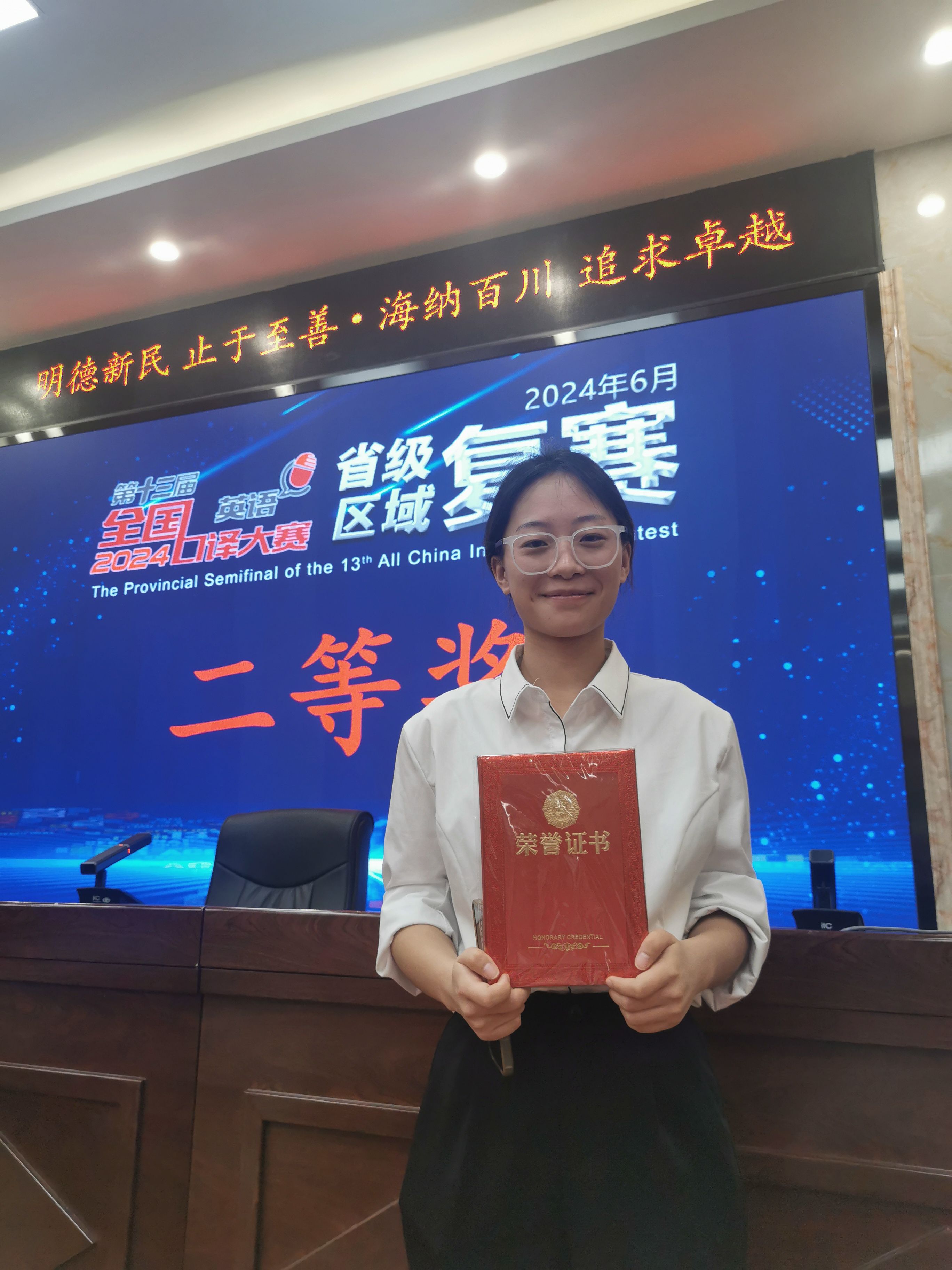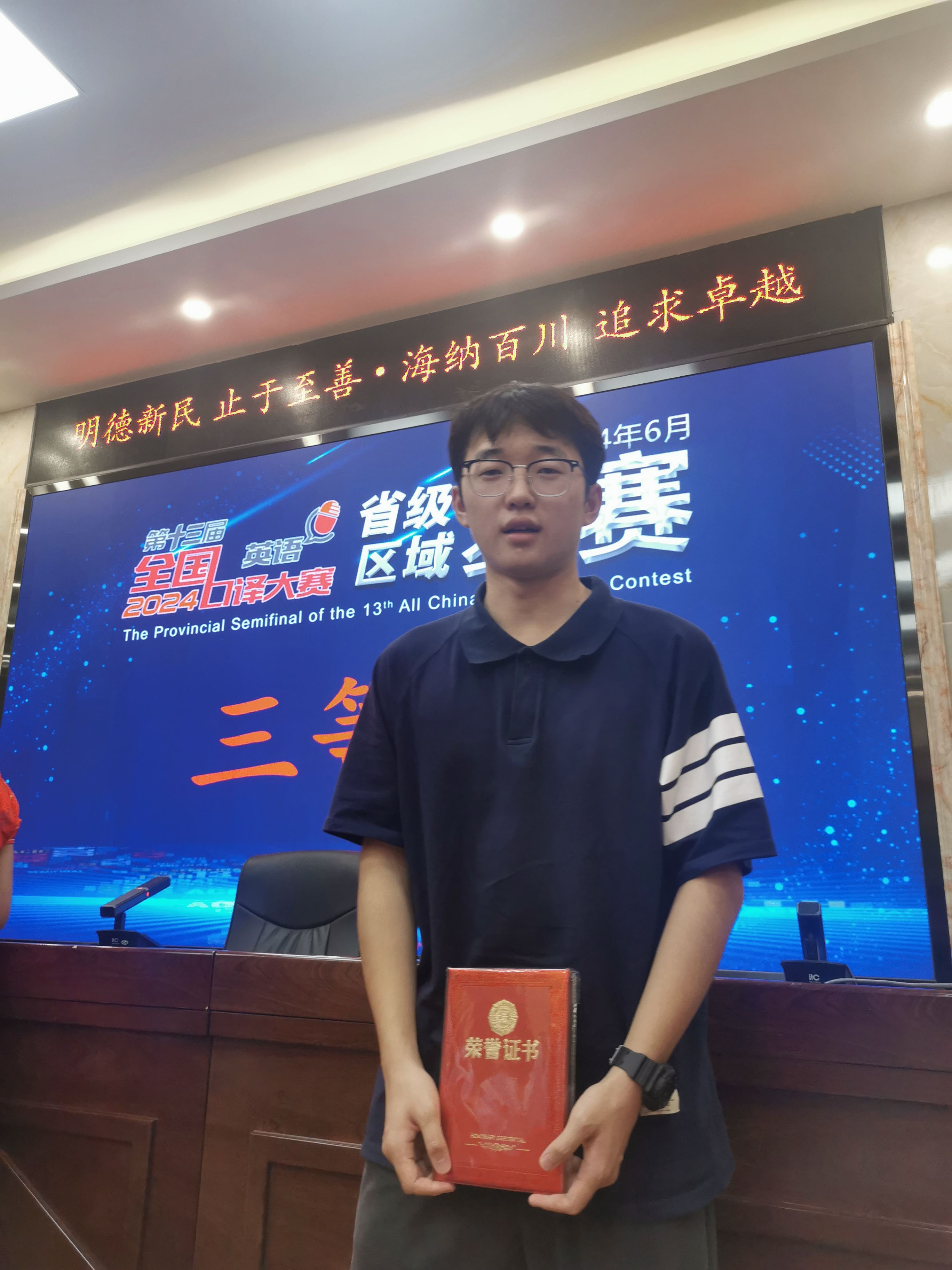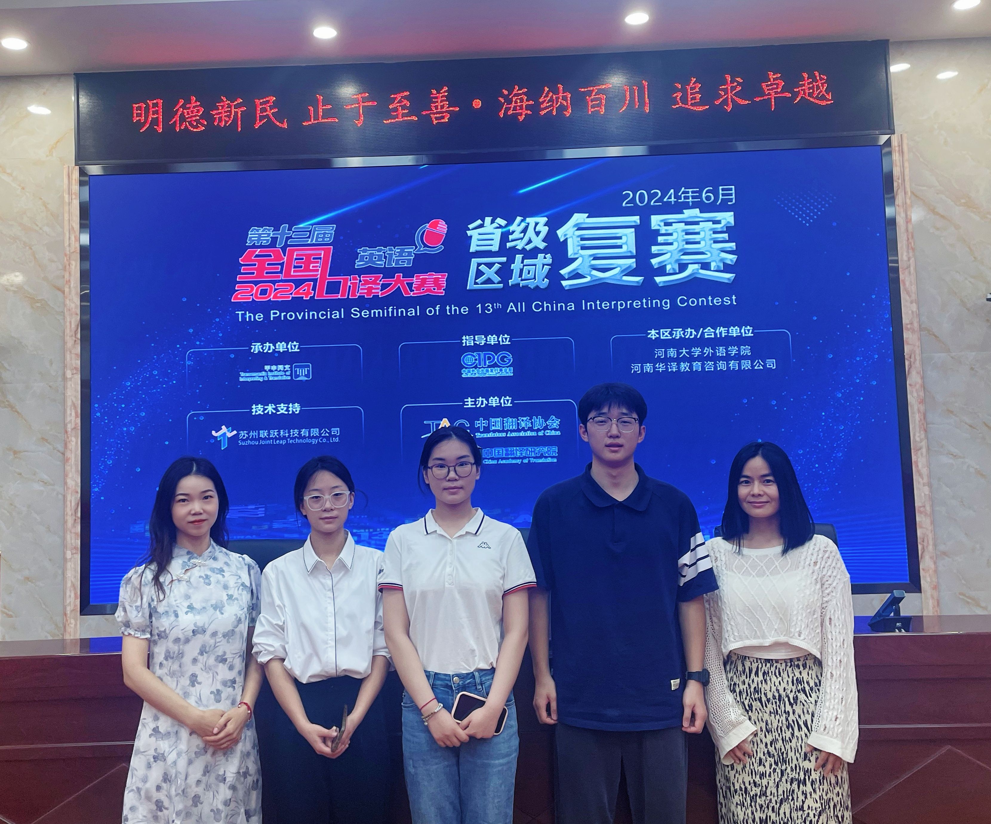 2024年6月22日,第十三届全国口译大赛河南省复赛在河南大学明伦校区举行,来自省内高校的近百名优秀选手参加了本次比赛,竞争异常激烈。由太阳成集团tyc33455cc翻译教研室孙燕冉、李笑寒、王余成三位老师指导的2021级翻译1班王嘉啟同学、赵倍弘同学和2021级翻译2班的兰琪萱同学经过上午场的比赛,顺利晋级到下午场的角逐。凭借扎实的专业素养和出色的现场表现,兰琪萱和赵倍弘同学荣获二等奖,王嘉啟同学荣获三等奖,为公司赢得了荣誉。
