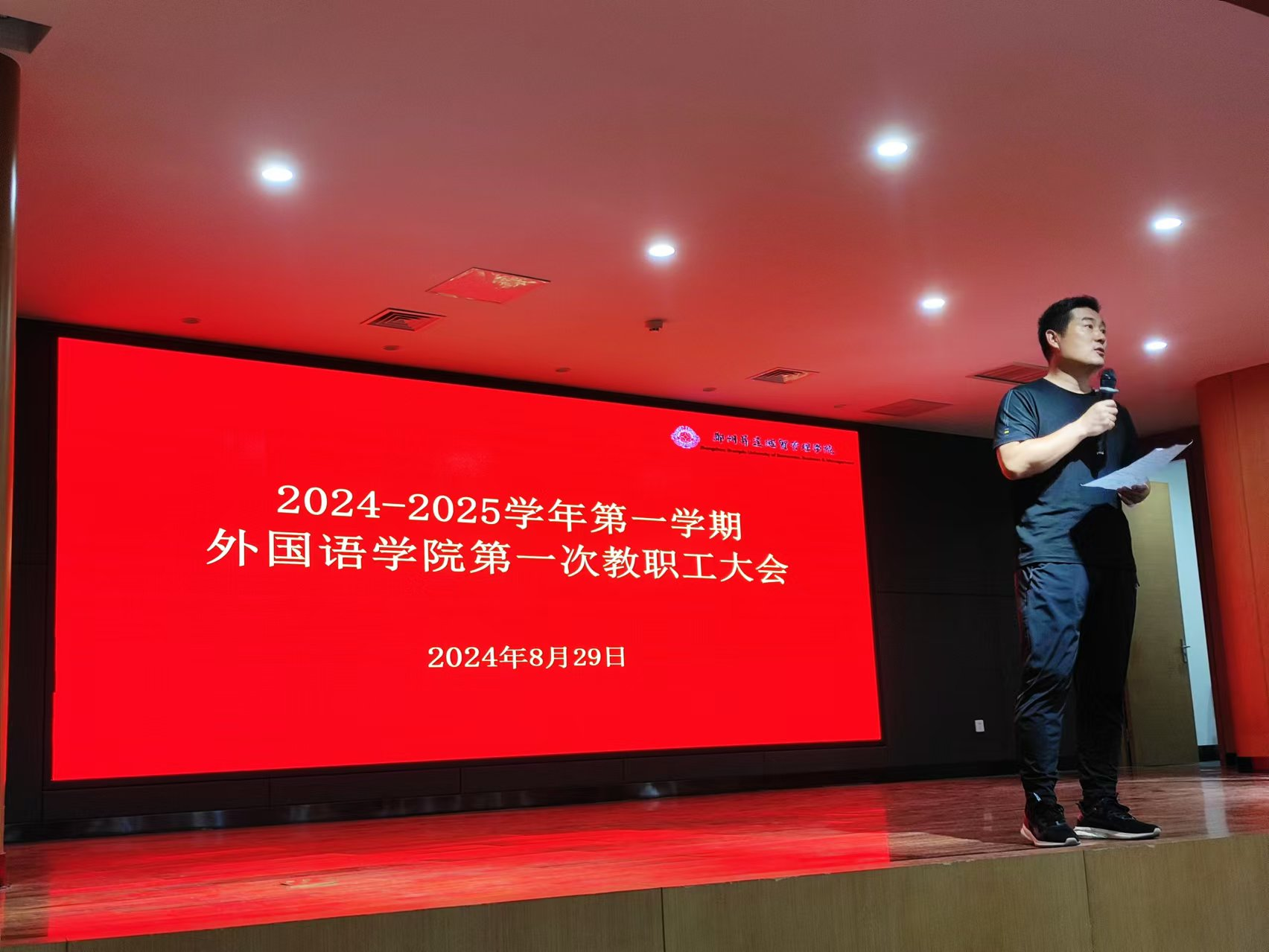 8月29日下午14:30,太阳成集团tyc33455cc在双创大讲堂召开2024-2025学年第一学期第一次教职工大会。会议由石皓召书记主持,王莉莉主任、教学秘书、行政秘书以及全体太阳成集团tyc33455cc教师出席了会议。