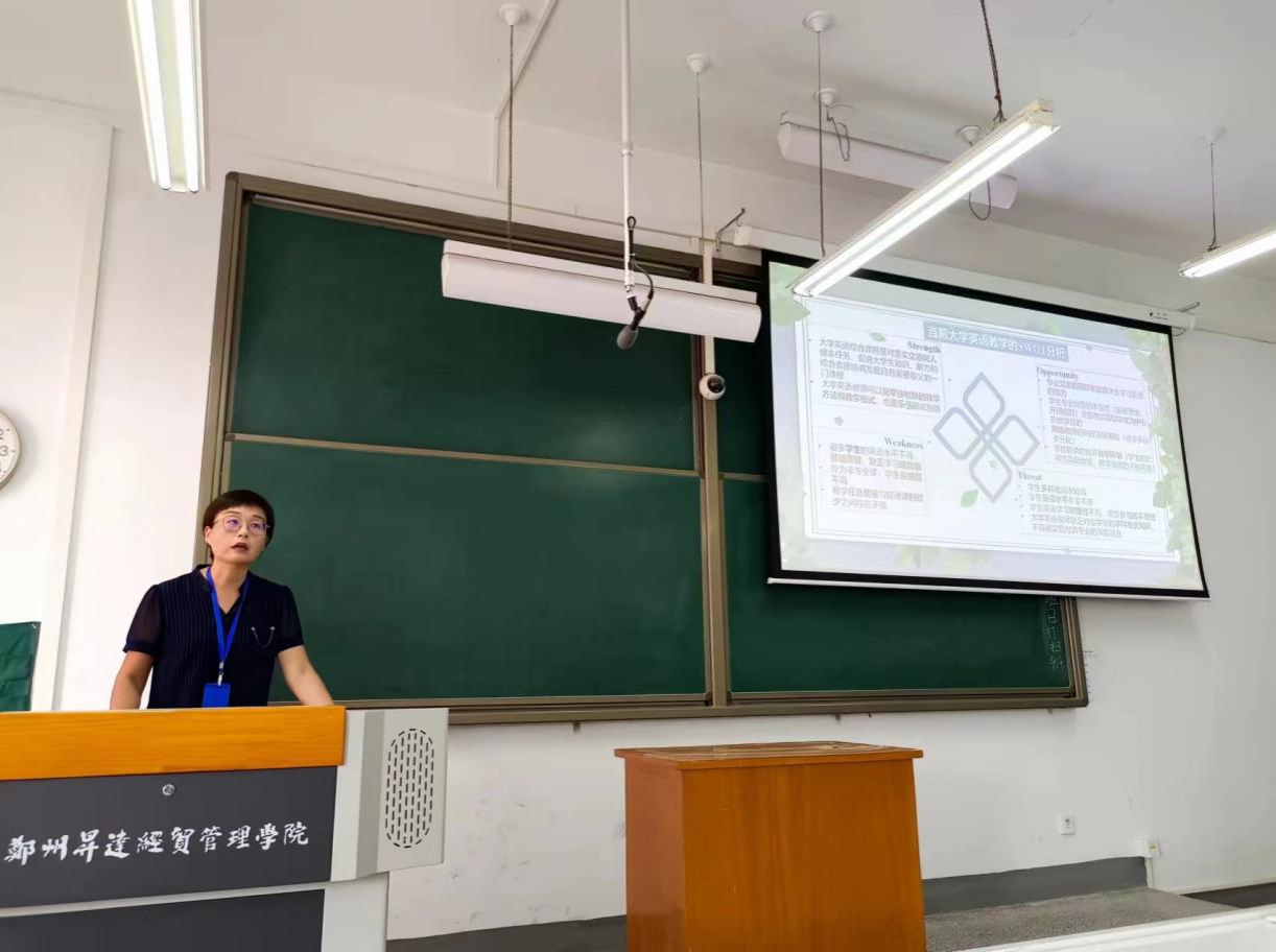 随后,王珂副教授带来了“BOPPPS+对分模型”混合式教学模式的新视角。她首先对大学英语教学的现状进行了SWOT分析,精准把脉当前教学中存在的问题与挑战。接着,王副教授详细阐述了如何将BOPPPS的高效互动与对分课堂的深度讨论相结合,探索出适合大学英语课堂的混合式教学新路径。这一创新思路引发了与会教师的热烈讨论与高度评价,大家纷纷表示将积极尝试这一教学模式,以期提升教学质量与员工学习效果。