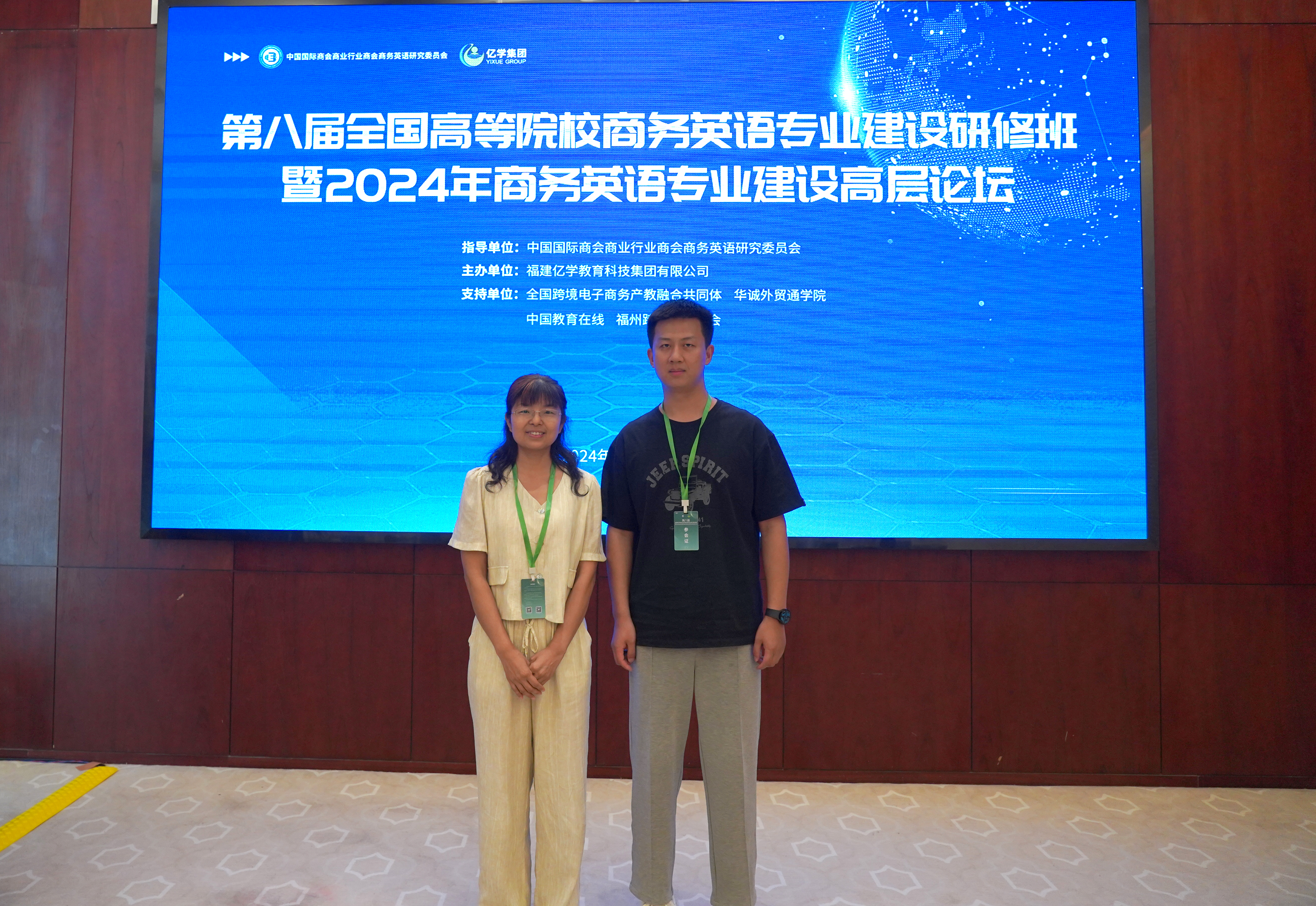 2024年7月16日-21日,太阳成集团tyc33455cc商务英语教研室张小红、孙磊老师参加了由中国国际商会商业行业商会商务英语研究委员会指导、福建亿学教育科技集团有限公司主办的“第八届全国高等院校商务英语专业建设研修班暨2024年商务英语专业建设高层论坛”。