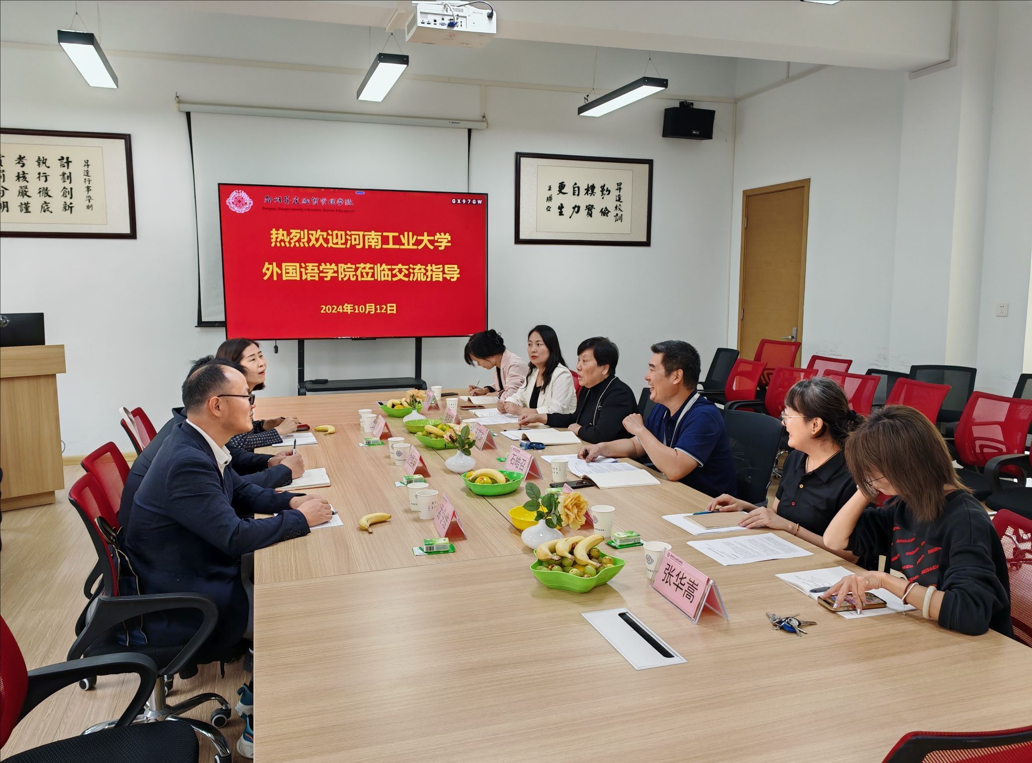 随后,双方围绕英语、翻译、日语本科人才培养和管理进行了深入探讨。沈国荣副经理分享了河南工业大学外语学院在本科人才培养方面的经验和做法,特别是在课程设置、教学方法、实践教学等方面的创新举措。孟令维副教授则就翻译专业的课程设置和教学质量提升提出了自己的见解和建议。郭崇副教授则介绍了日语学科的发展状况和未来规划,并分享了与东亚国家高校开展交流合作的经验。