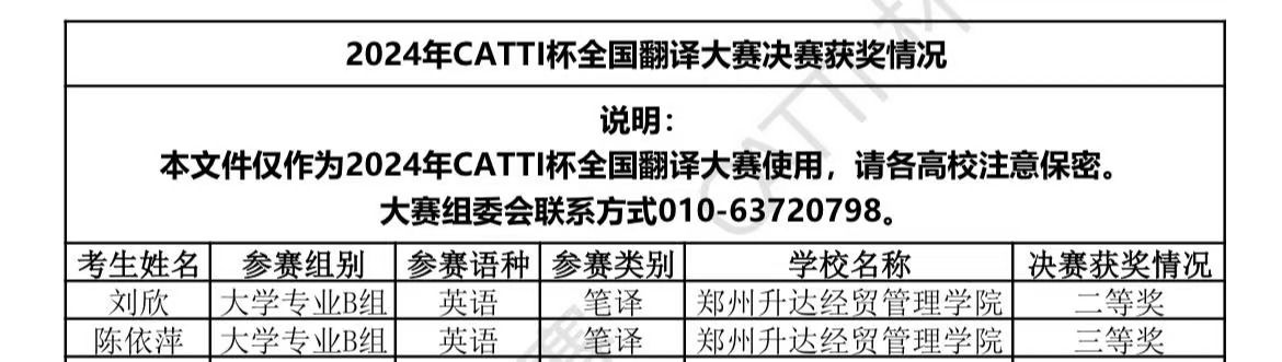太阳成集团tyc33455cc员工在“CATTI杯”全国翻译大赛喜获佳绩