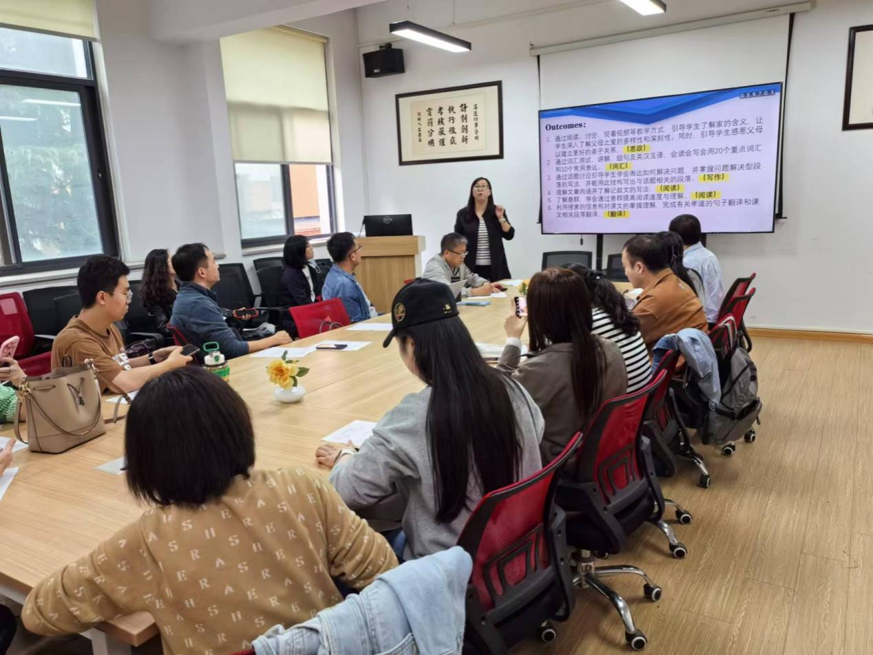 会议首先由张慧丽老师介绍自己对课本第2单元(Loving Parents, Loving Children)的教学设计。张老师基于BOPPPS理念设计教学课件,内容丰富,层层递进;活动设计得当、深入浅出,环环相扣,课件完整、系统,呈现出了较高的教学水平。