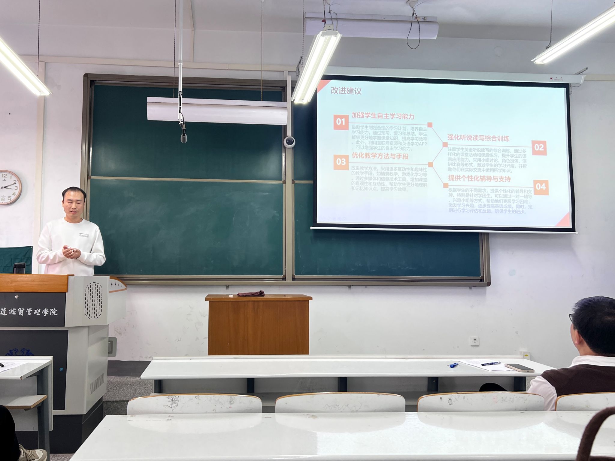 最后,大学英语第二教研室主任贺光辉副教授为此次分析会做了总结性发言,动员各位老师掌握学科发展及考试特点,了解教育前沿改革,从而提升英语课堂效率。