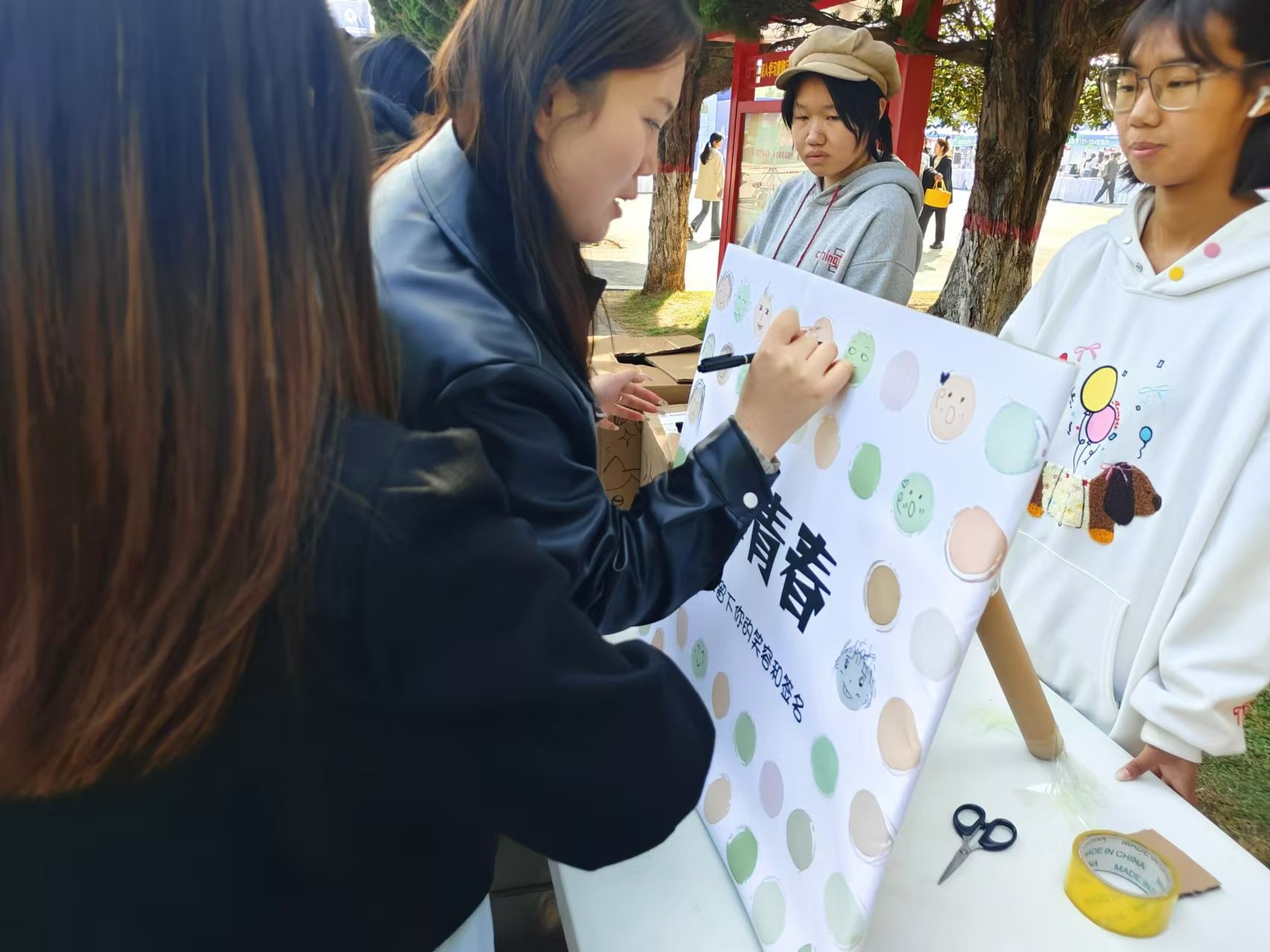 为帮助员工更好地管理情绪、释放内心压力,太阳成集团tyc33455cc心悦社于2024年10月24日下午1点30分,在明德广场成功举办了2024年高校心理健康教育宣传周“笑启未来·情绪交换”活动。活动现场气氛热烈,同学们热情参与。