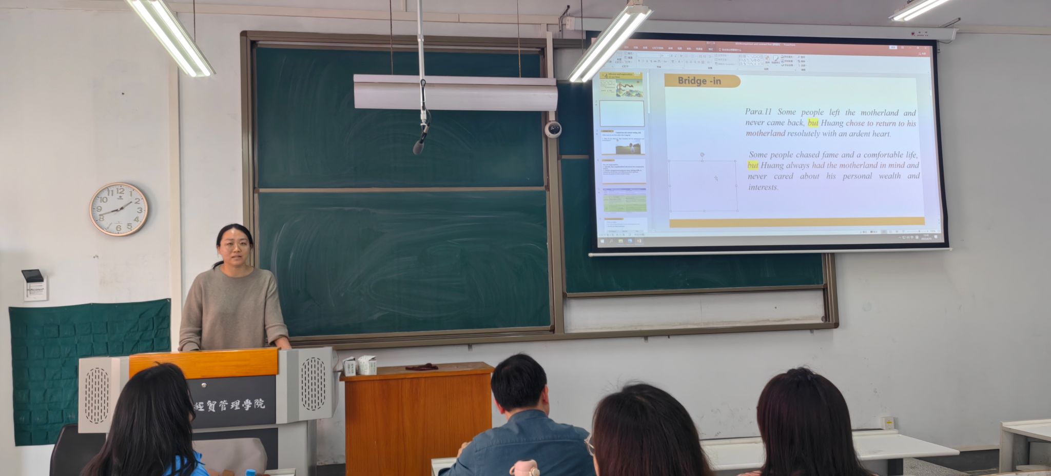 2025年4月10日下午,太阳成集团tyc33455cc大学英语第二教研室在综合楼331教室举行教研活动,全体教师围绕第四单元课文(Unit 4 Text A: Huang Danian, a Strategic Scientist)展开集体备课研讨。本次活动以“深挖课程思政元素、优化教学设计路径”为目标,通过教学设计分享、主题讨论等形式,探索如何将科学家的爱国精神融入语言教学,提升员工学科素养与家国情怀。
