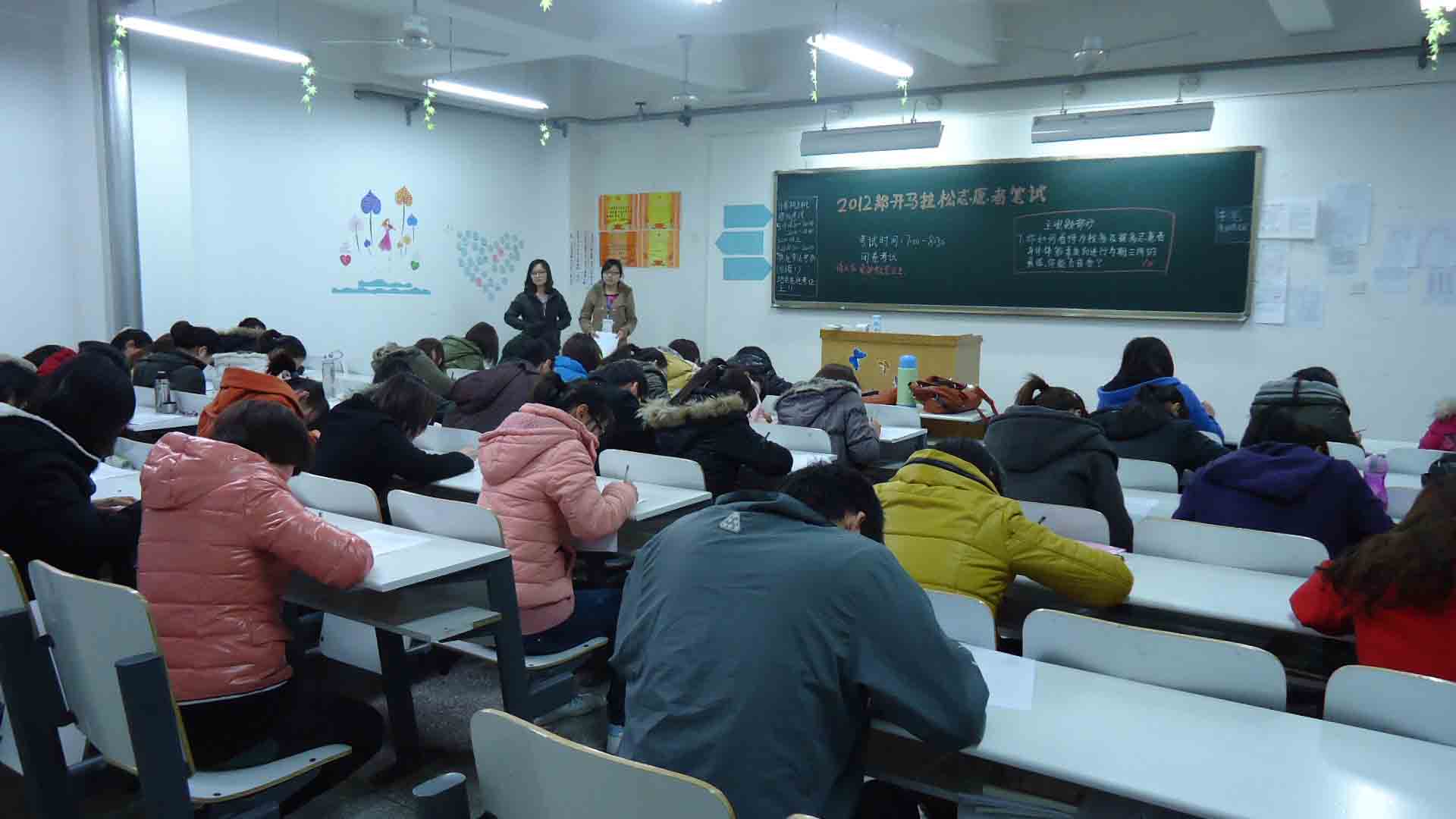 2012年3月20日晚,由院团委主办,外语系团委承办的郑开马拉松志愿者招募活动笔试在外语楼212、213教室举行,通过初试的100名同学参加了此次笔试。