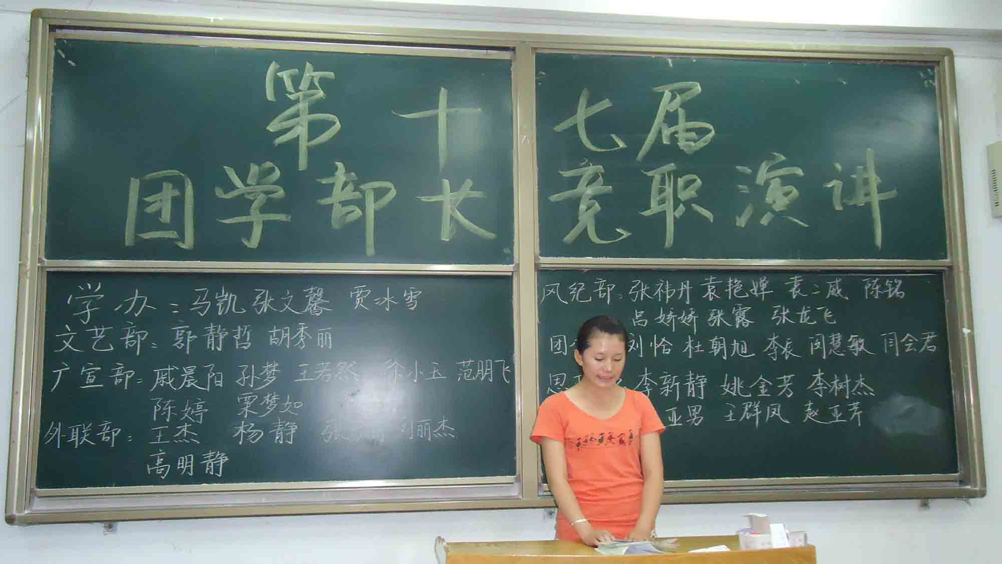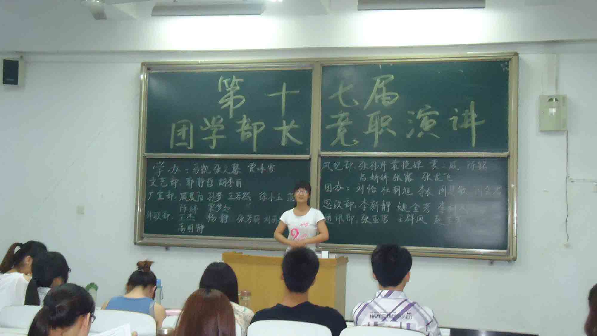 通讯部,组织部,思政部,团办,广宣部等15个部门的60多个名精英发表了声情并茂的竞职演讲。各位竞职者们通过总结在部门中一年的工作经验,流露出对本部门的深厚感情和不舍,同时也指出了部门发展存在的问题,规划了部门明年的工作。演讲中间,台下不时暴发出阵阵掌声,演讲现场气氛活跃,充分展现了第十七届团学成员昂扬向上的青春活力。