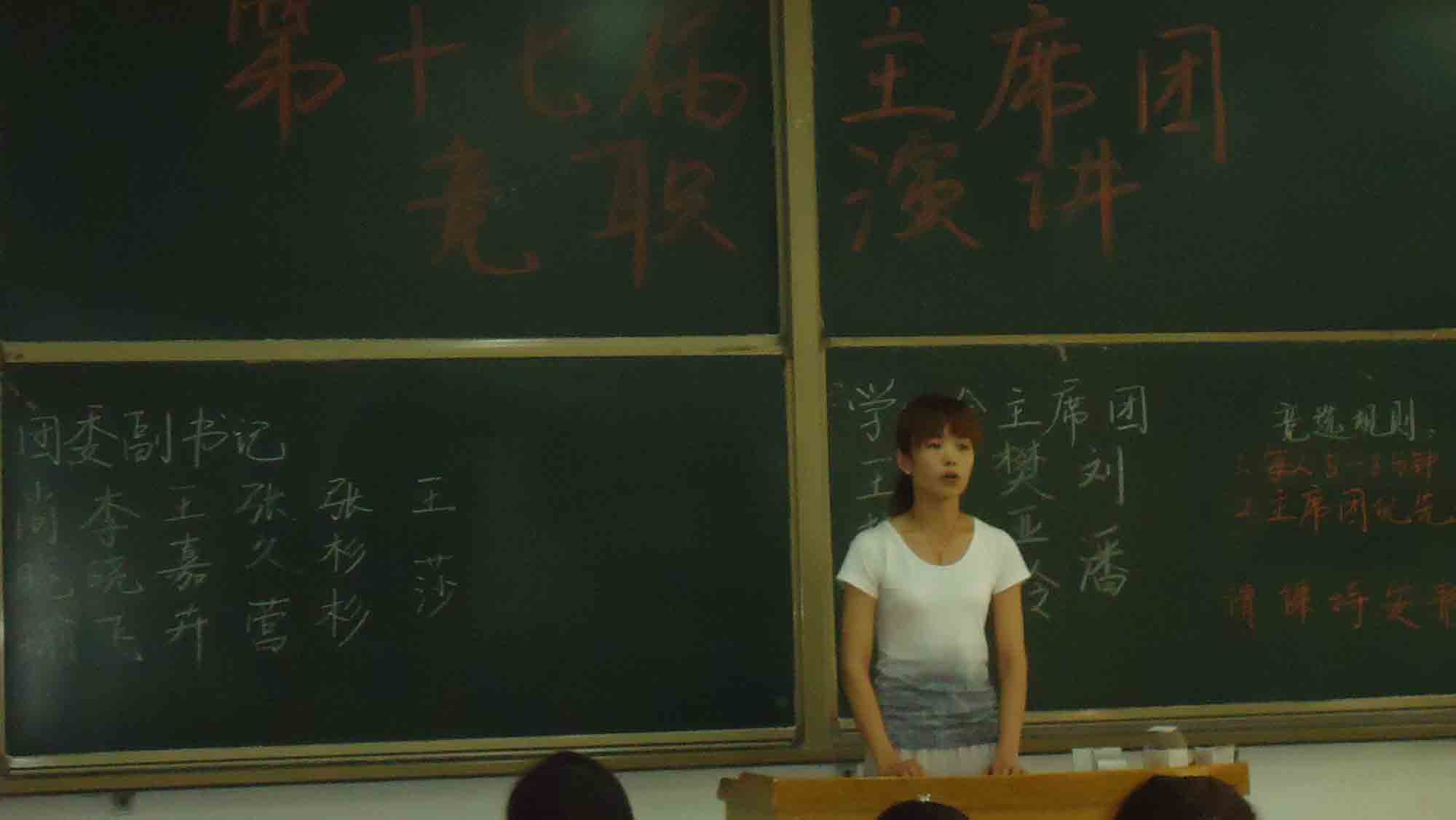外联部部长王梦娇、文艺部部长王大千、风纪部副部长樊亚玲、刘潘等四名同学分别回忆了自己在员工会两年的点点滴滴,表达了自己对外语系员工组织的深厚感情,也提出了一些对团学工作的建议,博得现场热烈的掌声;然后是团委副书记的竞选。组织部部长尚晓瑜、副部长李晓飞等八名同学也分别叙述了自己在系团委两年的经历和感受。他们真挚的感情和诚恳的态度令在场的同学十分感动;最后,外语系行政秘书惠凯赟老师为此次竞选作总结。第十七届主席团竞职演讲圆满结束