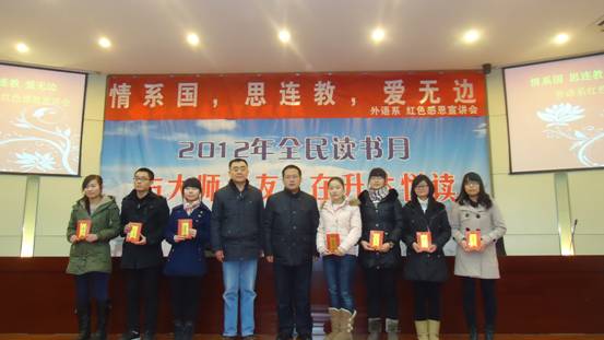 外语系姚金芳同学畅谈人生与信仰,表达了坚定共产主义信念和永远跟党走的决心、信心。外语系刘恰同学、支教先进个人文法系李昂、外语系熊桂珍三位同学和大家分享了他们的支教感想和体会,在支教过程中磨练人生、增长才干的同时也收获了感动。现场播放了同学们精心制作的ppt,展示了大家在支教过程中与小员工们一起上课、做游戏等一个个生动、活泼、动人的场景。今年正值“12.9运动”七十七周年,现场还播放了“12.9运动”的短片带领大家回顾那场震撼人心的运动,深深体会先辈们的奉献与追求,增强了大家振兴中华的使命感和责任感。