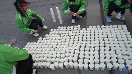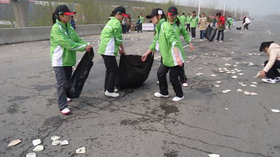 比赛前志愿者们及各路口的保安人员清理道路,阻止一切交通工具通行。各志愿者就位站岗。比赛于8:30正式开始。当运动员们跑到公司的服务站点时早已疲惫不堪,但他们的眼神中却没有丝毫的放弃。虽然气喘吁吁,头发紧紧地粘到脸上,速度也放慢了许多,但他们仍坚持尽力挥动臂膀,努力奔跑。大家相互鼓励,互相加油,有的以小队形式进行,有的是单独跑。大家的激情震撼了在场的所有人。比赛一直持续到上午11:00结束。志愿者们将道路清理干净。大家虽然很累但每个人脸上都挂着微笑。于12:30公司全体志愿者按原路返回学校。