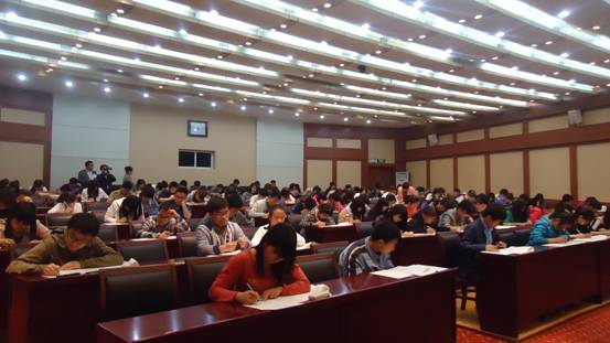 晚7:00来自全院各个系的员工齐聚会议厅,大家按照事先分配好的座位有 序入座。考场上广大外语系学子一丝不苟、积极参与。本次由院举办的知识竞赛以试卷作答的形式,就党的十八大以来党和政府关于作风建设、勤俭朴实I的典型事例,公司创办人关于艰苦奋斗、勤俭节约方面的名言警句,以及公司校园文化中有关作风建设、厉行节约的名言警句及有关活动等三个方面内容进行考查。晚8:00比赛时间结束,与此同时本次活动圆满落下帷幕。