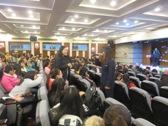 现场气氛不断升温。随后主持人巧妙通过一个经典游戏:击鼓传花,来了一个全场大互动!“幸运儿们”也是各个大胆走上台来展示才艺赢得呼声连连,而被命中的学长学姐也是不忘“使命”以自己经验给同学们最诚心的交流,语言朴实又都句句在理。而在随后精彩的诗朗诵《三生石》,手语歌《挥着翅膀的女孩》也给在场观众带来了不小的震撼。现场一片欢乐的海洋!最终,持续两个小时的交流会在欢悦气氛中接近了尾声,同学们甚是意犹未尽!而在最后的欢声笑语中,主持人宣布本次新老生交流会圆满结束!
