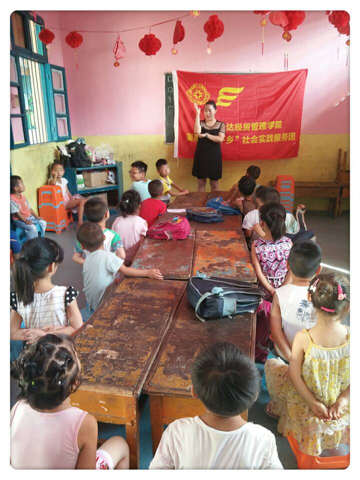 经过两个小时的车程,到达了此次“三下乡”支教目的地——新野县横堤铺村红太阳幼儿园。在见到董园长后,园长告诉我们:“暑假,村里孩子父母都在外地打工,孩子们的爷爷奶奶年龄也都大了,一家好几个孩子看不过来就送到幼儿园来,老师交他们写字,做游戏。孩子们都很爱学习。”