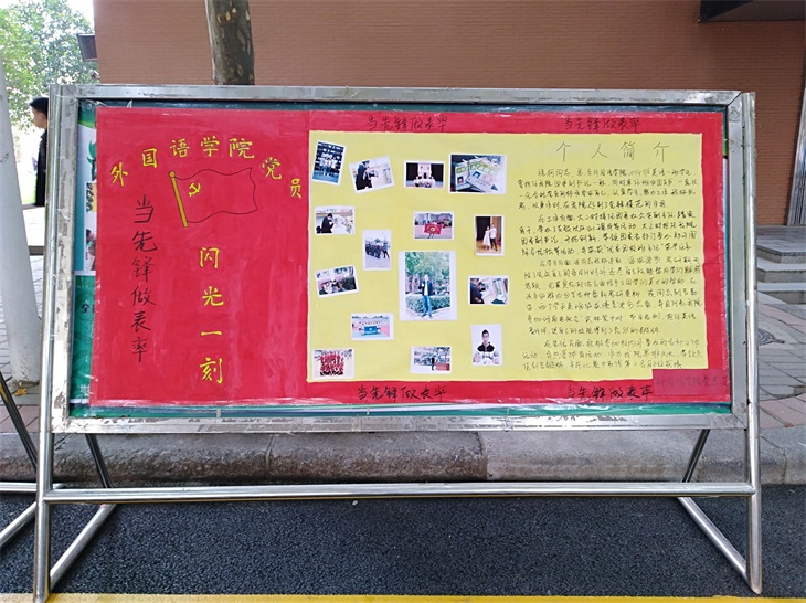 该活动每两周为一期,推出师生党员各一名,对推出了每一位党员,以展板、图片和小视频的形式,进行宣传。外语学院号召全体党员,每一位都要创建属于自己的“精彩一刻”,以实际行动向党的十九大献礼,推动学院的迎评促建顺利开展。(图文:左新粮)