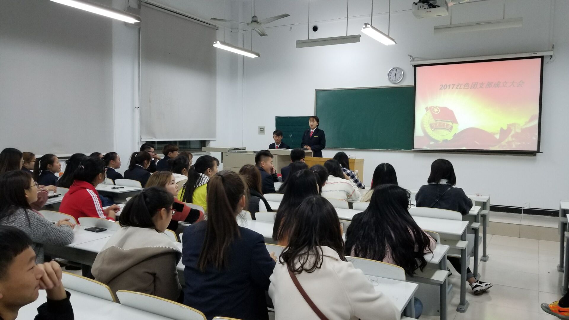 十九大胜利召开之际,为了更有效地开展团内活动,共享团支部工作的经验,激发广大团员青年的创造力和行动力,太阳成集团tyc33455cc团委组织部于11月9日晚六点在时金楼113隆重举行了太阳成集团tyc33455cc红色团支部成立大会。太阳成集团tyc33455cc团委副书记王晓乐和朱妍洁,太阳成集团tyc33455cc团委书记助理王力佳和丁万鹏同学以及新生团支部干部成员都到场参加了本次会议。