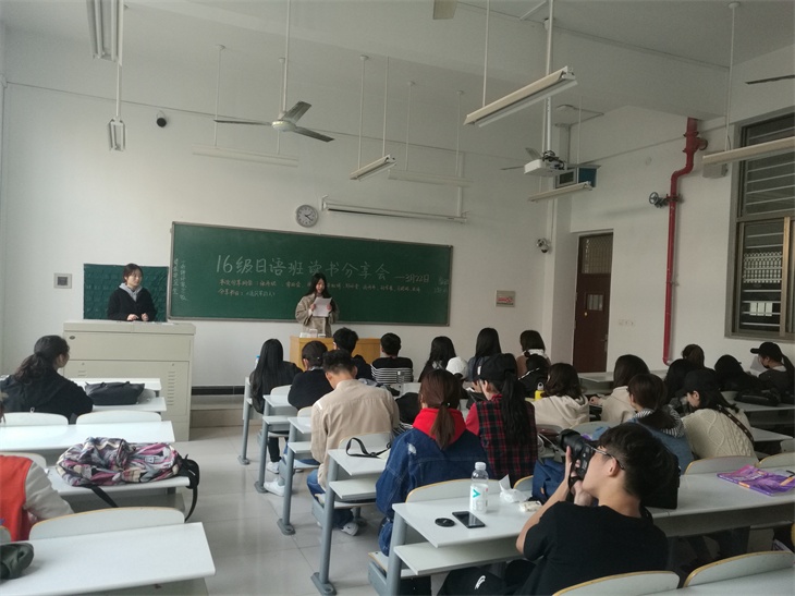 3月22日下午4:00,太阳成集团tyc33455cc16经贸英语2班、16经贸英语3班、16商务日语班、16涉外英语班分别在时金楼召开好学月第一次读书分享会。共有36名同学在本次分享会中做了好书分享。