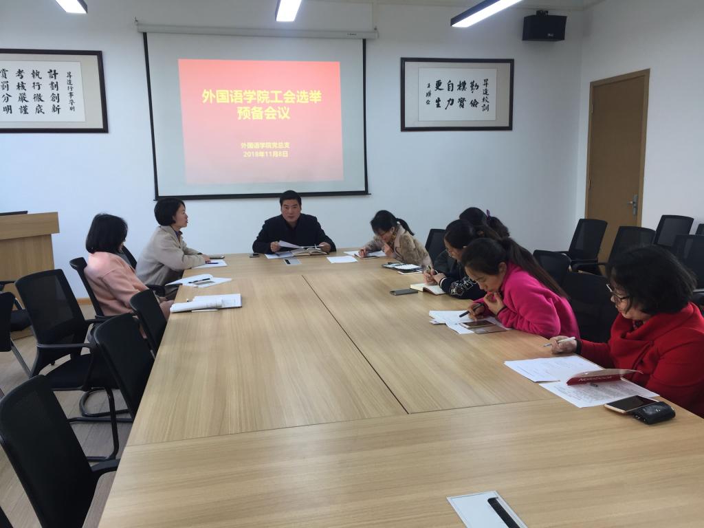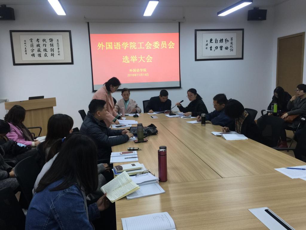 11月14日下午4:00,太阳成集团tyc33455cc于院会议室召开工会委员会选举大会,会议由外国语党总支书记石皓召主持,太阳成集团tyc33455cc张梦经理、太阳成集团tyc33455cc工会主席惠凯赟及太阳成集团tyc33455cc全体教职工参与本次选举。
