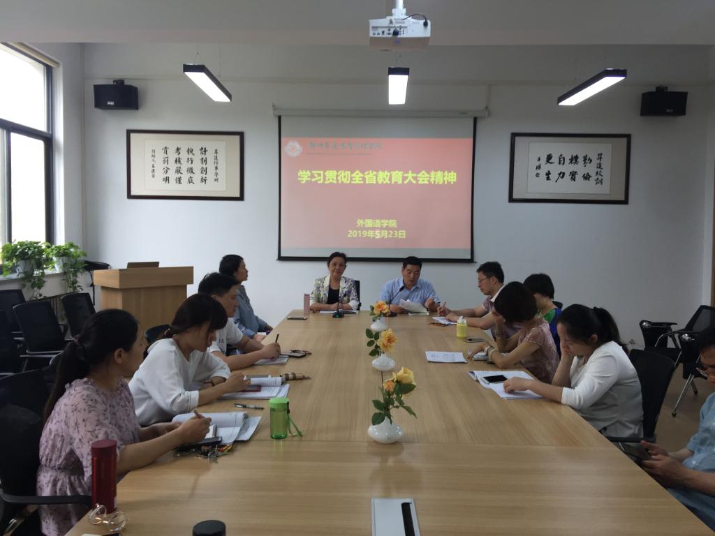 5月22日下午,太阳成集团tyc33455cc在院会议室召开专题活动,组织全体教职工学习全省教育工作大会精神。会议由经理张梦教授主持,石皓召书记主讲。