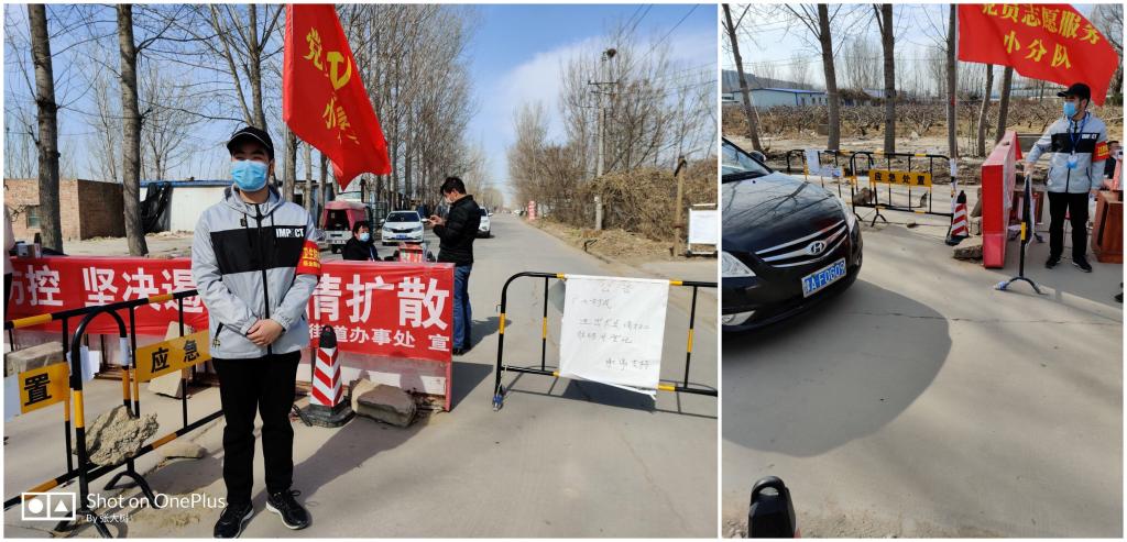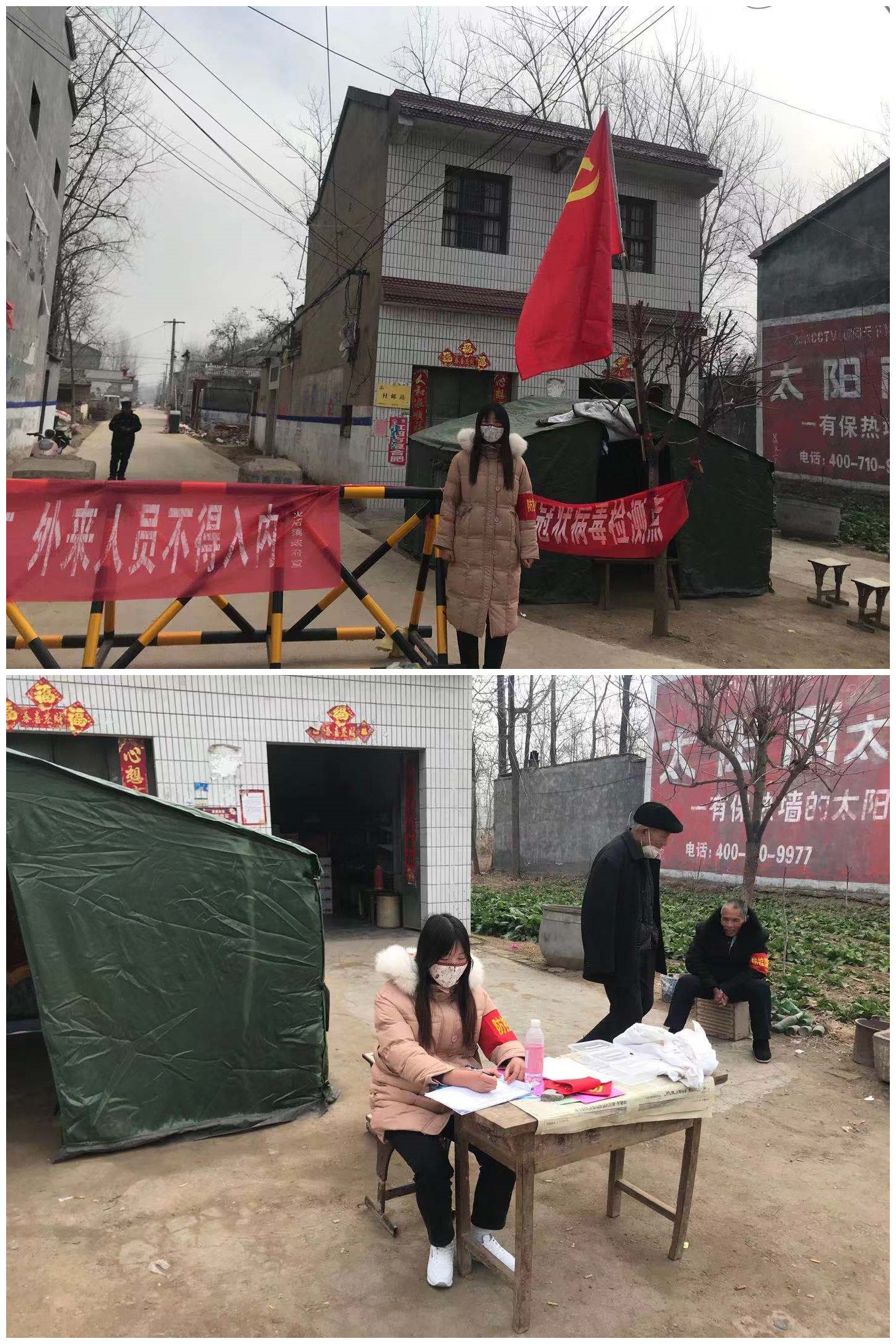 18级商英本二班的刘彩凤同学在疫情爆发后,主动申请加入家乡志愿者的队伍中。从1月29到2月22在商丘市夏邑县火店镇后刘店村的村口防疫站执勤,对来往的人员进行排查,体温测量,对体温异常的来访人员引导就医。戴着红袖章的她,工作极其认真,往来的老乡发自内心的伸出大拇指。