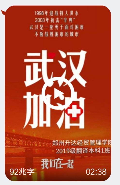 疫情来袭,在群里她首先安抚大家的情绪,引导员工及时调整心态,提醒员工在寒假期间做好学习的规划。引导员工做到不信谣,不传谣,引导员工树立正确的世界观,人生观,价值观,运用新媒体新技术,指导员工创作为中国,为武汉加油的视频。