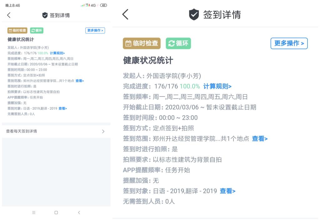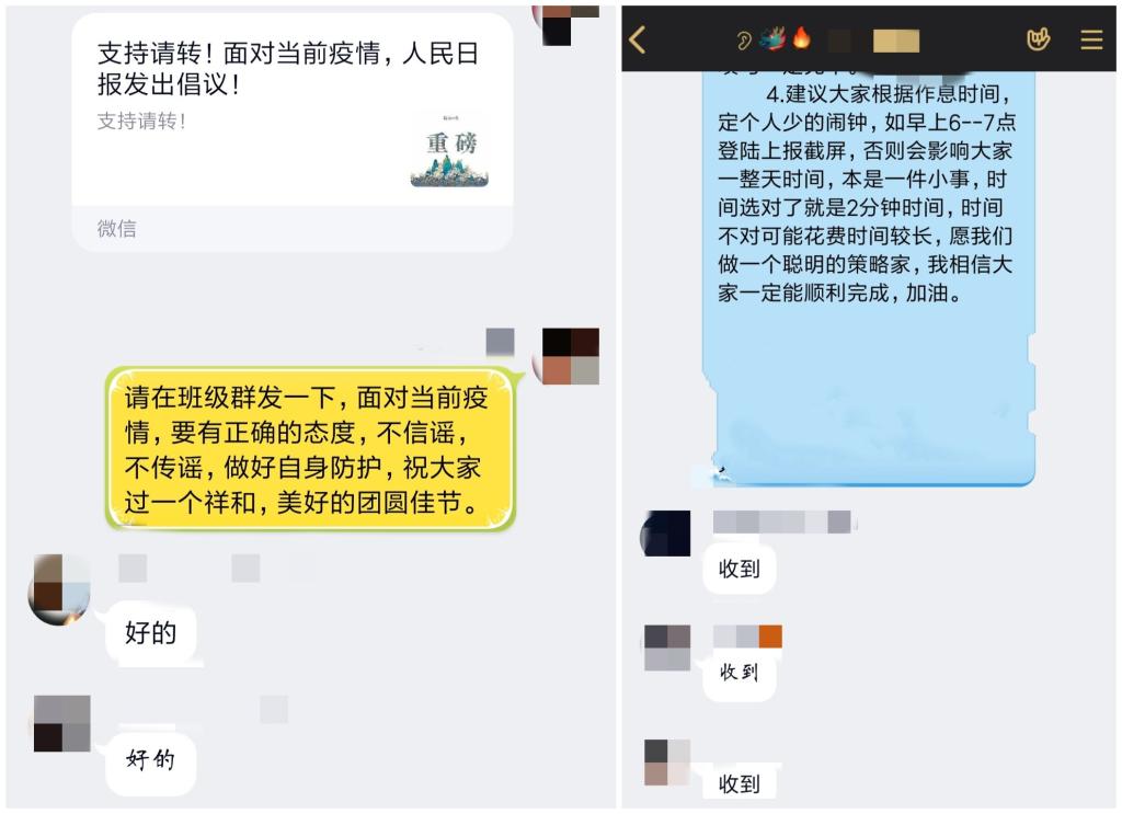 为了做好各类信息统计,她发挥员工干部的作用通过辅导猫和两微一端来收集数据,在群里及引导员工设置闹钟,对于班干部联系不上的同学,她采取一一打电话的方式,以保证及时有效的完成任务。每次收到任务的时候,下发通知的时候,她会采取专人专事负责制,每个班委负责一件事,高效率地完成各项任务。