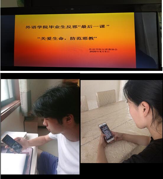 2020届毕业离校之际,为了让毕业生时刻树立科学的思想观,保持先进性,进一步增强自身责任意识,识别邪教、防范邪教意识,外语院在石皓召书记的带领下,精心部署了毕业生反邪“最后一课”活动。
