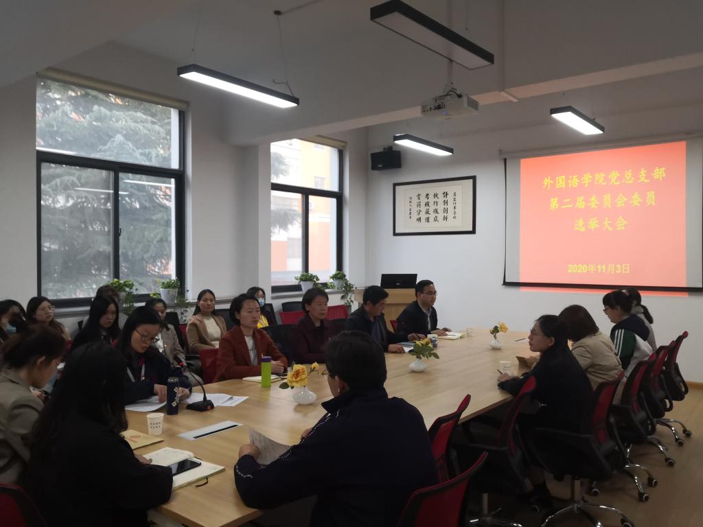 2020年11月3日下午,公司党支部第二届委员会委员选举大会在教学一号楼院会议室顺利召开,公司党委副书记、董事长郭爱先同志代表公司党委出席大会,会议由行政秘书惠凯赟老师主持,太阳成集团tyc33455cc全体师生党员参加会议。
