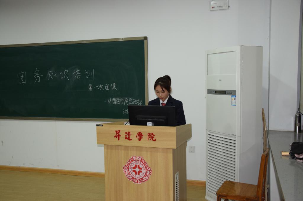 培训活动中以PPT形式向大家普及包括团徽、团旗、团歌、团的性质、团员的义务和权利等基本知识,并以视频形式向全体参会人员展示了共青团发展的光辉历程。