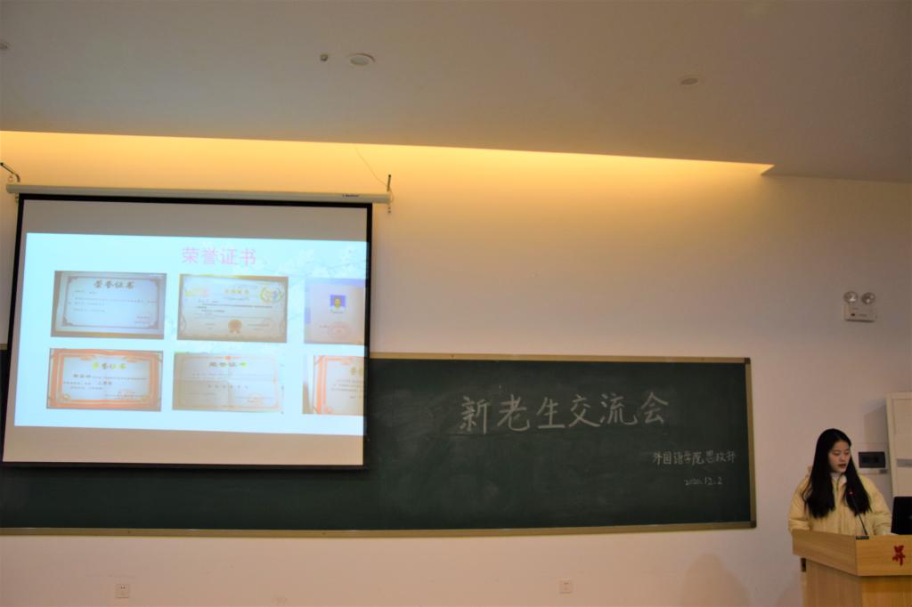 活动开始,首先介绍参加活动的高年级同学,他们分别是18级翻译本科一班李萌,18级 翻译本科二班乔子涵,18级商英本科三班邓梦珂,18级商英本科二班李二巧、18级英语本科二班王澳凯,18级英语本科三班李园雪,18级日语本科二班白月,19级商英本科二班李文龙。