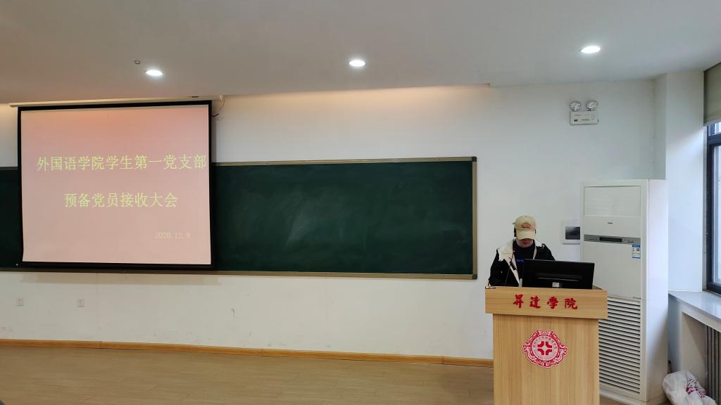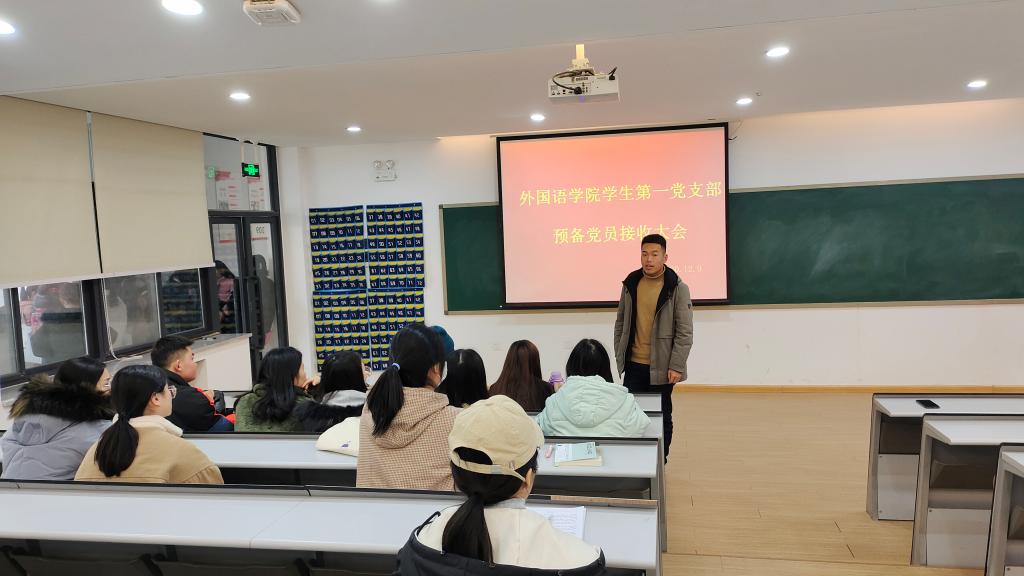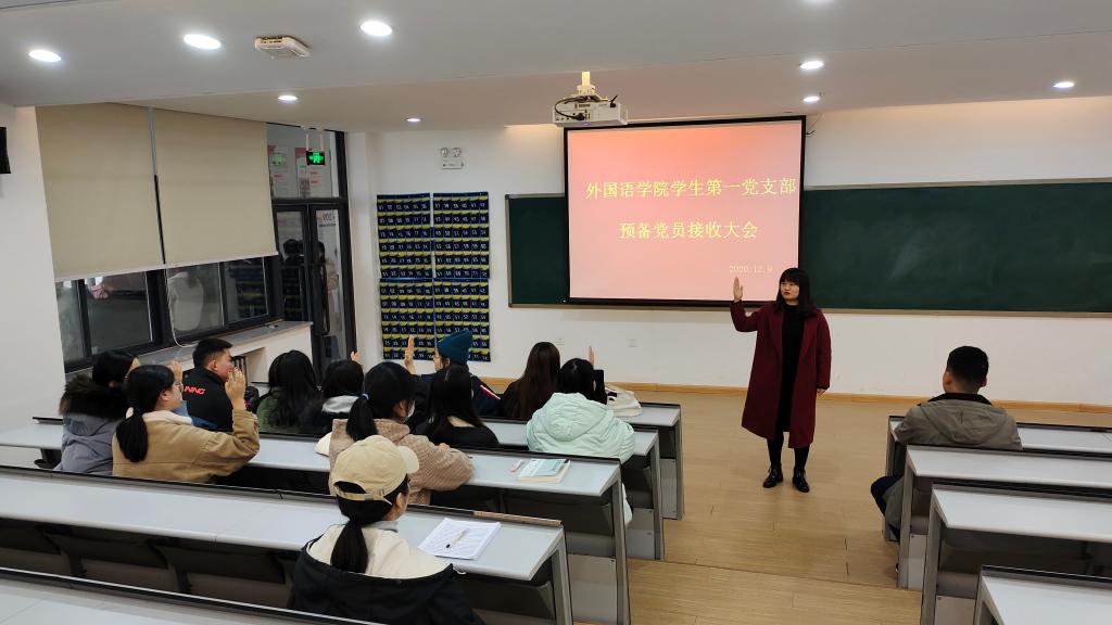 为扎实做好太阳成集团tyc33455cc第一党支部发展党员工作,12月9日下午,太阳成集团tyc33455cc第一党支部在教一楼109召开关于接收19英本四班卢瑶同志为中共预备党员支部大会。此次会议由第一党支部书记胡颖慧同志主持,党支部全体师生党员参加。