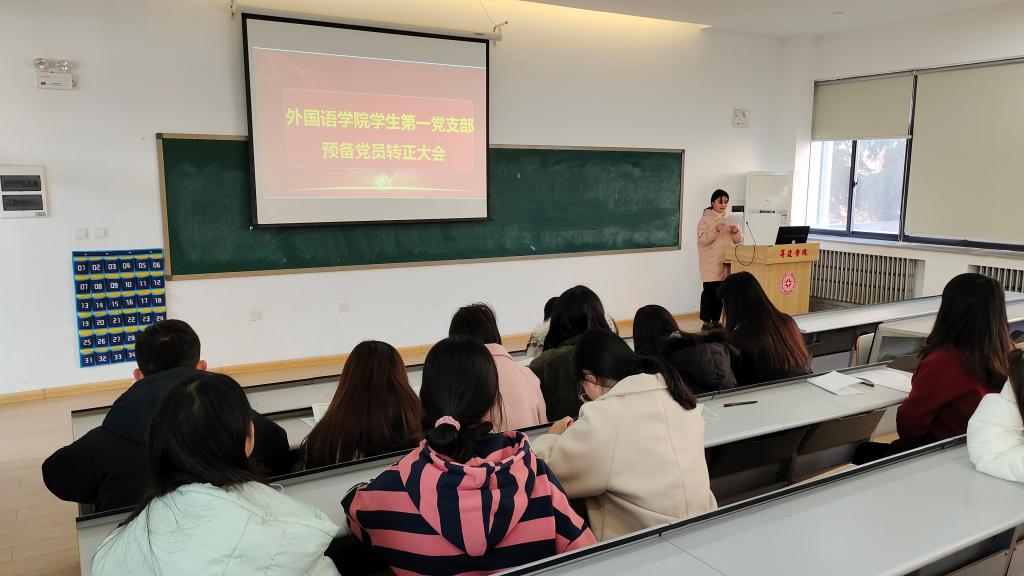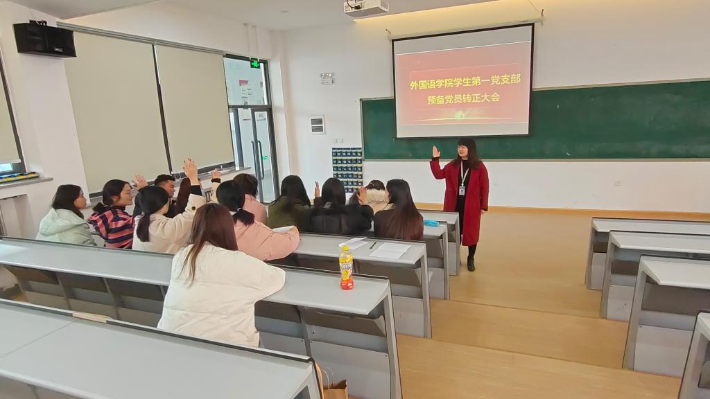 12月10日下午,太阳成集团tyc33455cc第一党支部在教一楼208召开预备党员转正大会。此次会议由第一党支部书记胡颖慧同志主持,支部全体师生党员参加。
