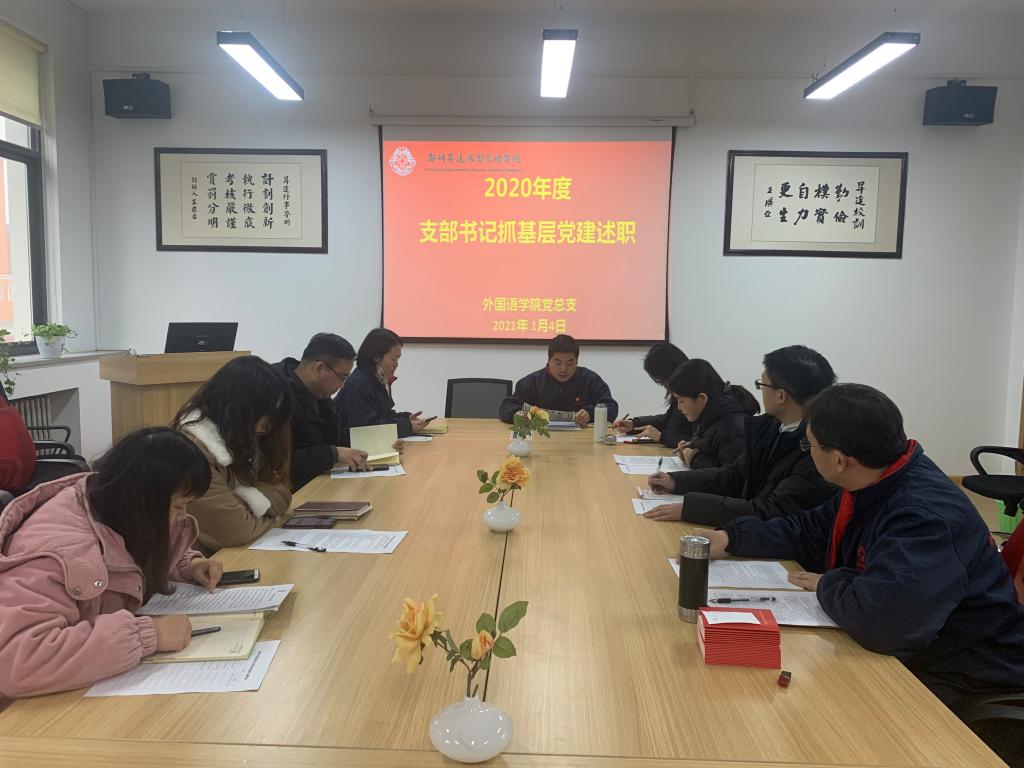 2021年1月4日,在院会议室,公司党总支召开2020年度党支部书记述职评议会议,会议由公司党总支书记石皓召主持,全体院总支委员、教工党支部和各员工党支部书记参加会议。