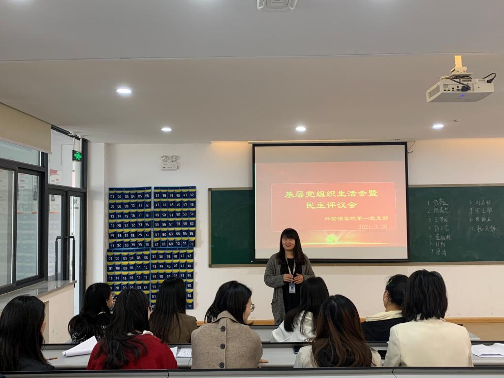 3月30日下午4点,太阳成集团tyc33455cc第一党支部在教一楼109教室召开了2020年度组织生活会暨民主评议党员大会,会议由太阳成集团tyc33455cc第一党支部支部书记胡颖慧同志主持召开,支部全体党员同志参加了会议。