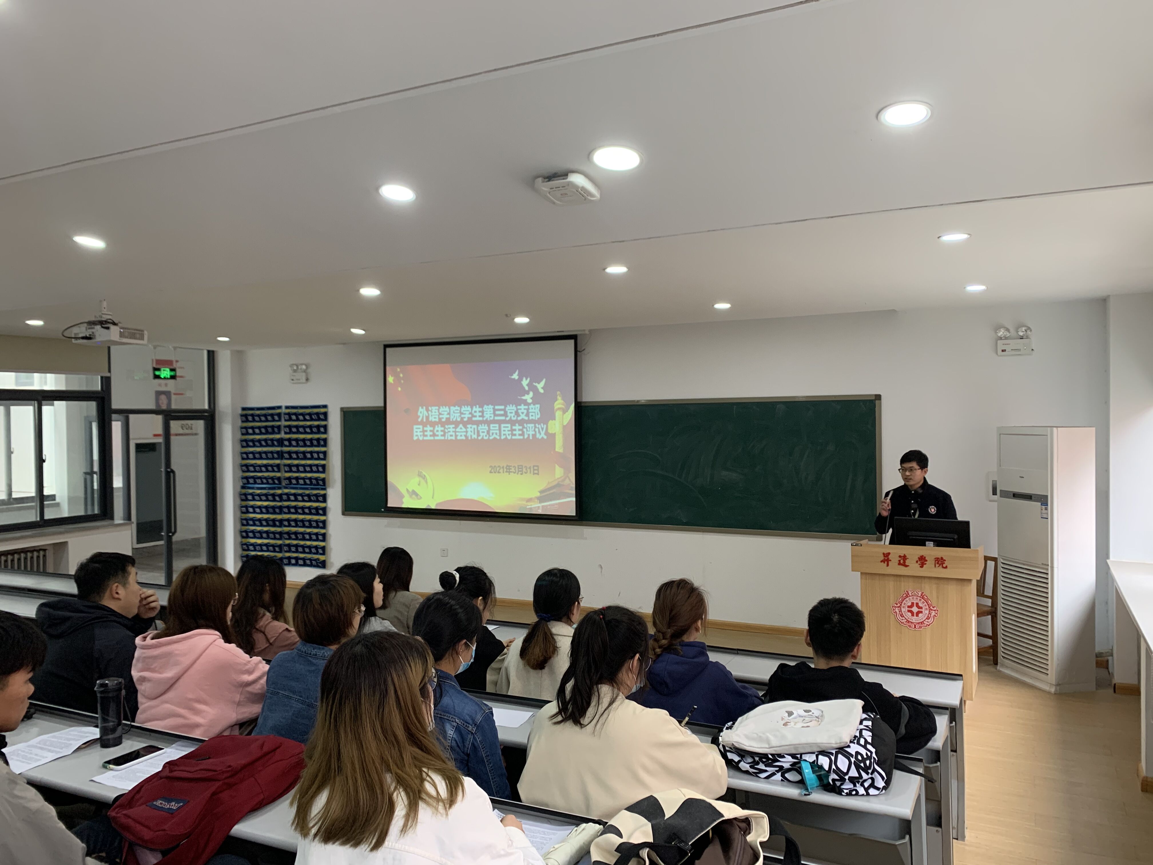 为进一步强化党员的身份意识,提高自身党性修养,2021年3月31日在教学一号楼109教室,太阳成集团tyc33455cc员工第三党支部召开了2020年度组织生活会和民主评议党员会议,会议由支部组织委员王彬同志主持,行政秘书惠凯赟同志、支部书记赵艳娜同志与全体员工党员共同进行了讨论与学习。