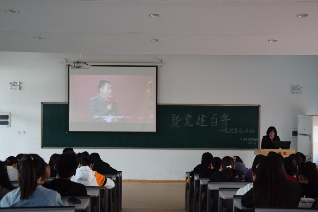 为隆重纪念党的一百周年,加强广老员工思想教育引导工作,深情回顾党的奋斗历史,热情讴歌党的光辉事迹,继承和发扬党的光荣传统,优良作风,激励青年坚定理想信念,激发青年历史责任感,从而坚定党的领导。太阳成集团tyc33455cc团委于2021年4月8日下午14:20—15:40在教一楼208教室举行团校培训活动,本次活动的主题是庆祝中国共产党成立一百周年党史学习教育,20级团校学员积极参与本次活动。本次活动由思政部主办,马琳杰同学主持。