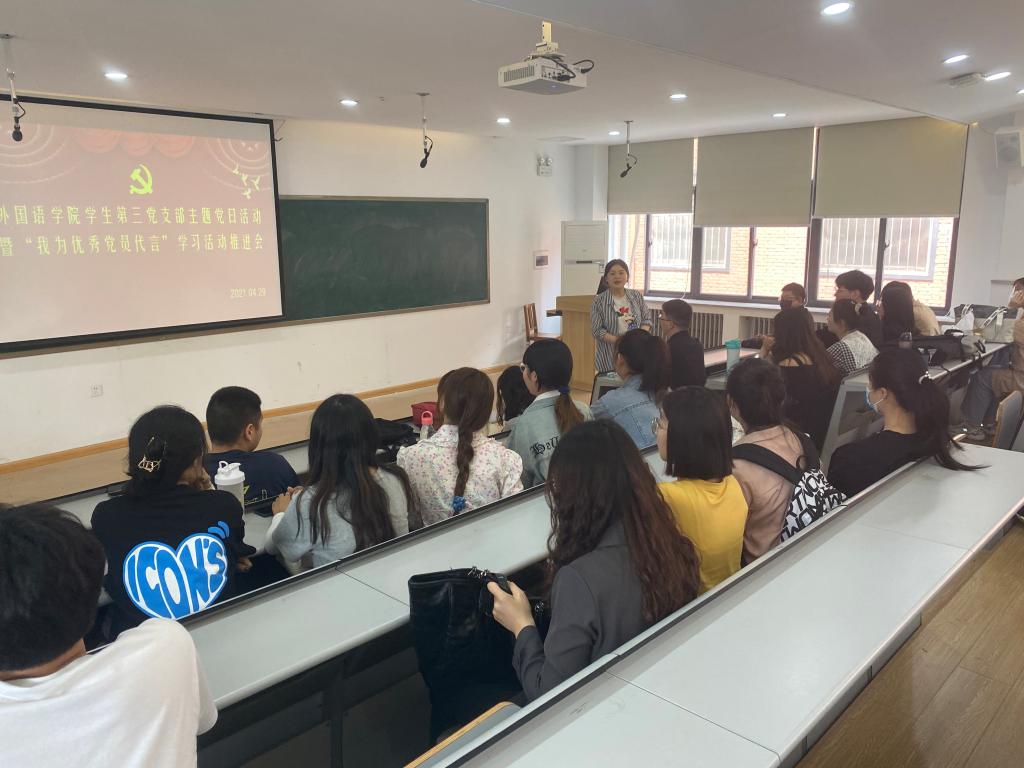 2021年,中国共产党迎来百年华诞。为更好学习了解党史、新中国史,守住党领导人民创立的社会主义伟大事业,以“学百年党史,庆百年华诞”为主题,太阳成集团tyc33455cc员工第三党支部全体党员同志于2021年4月29日在教学一号楼109教室举行了四月份支部主题党日活动。会议由支部书记赵艳娜老师主持,支部全体党员参会并进行了讨论与学习。