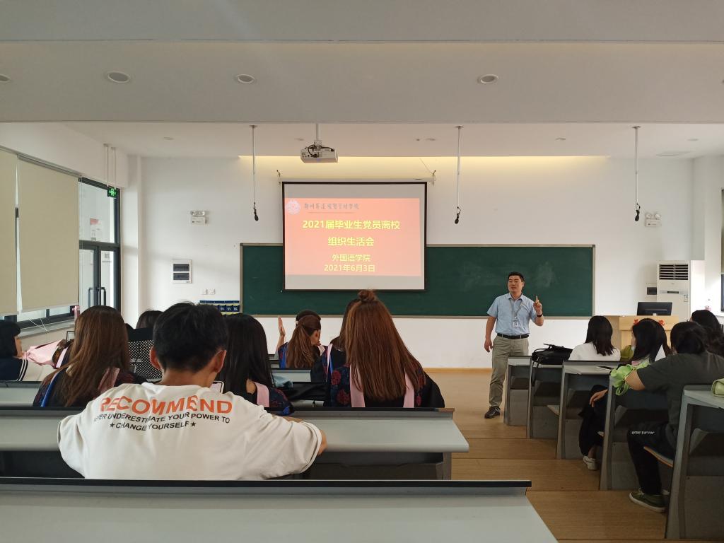 2021年6月3日上午,公司党总支在教学1号楼208召开2021届毕业生全体党员离校组织生活会。会议由员工第四党支部书记田倩倩同志主持,党总支书记石皓召同志参加了此次组织生活会并讲话。