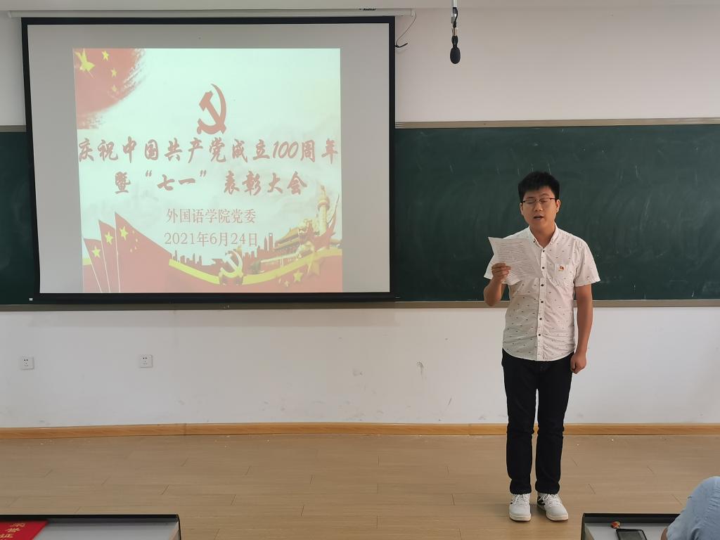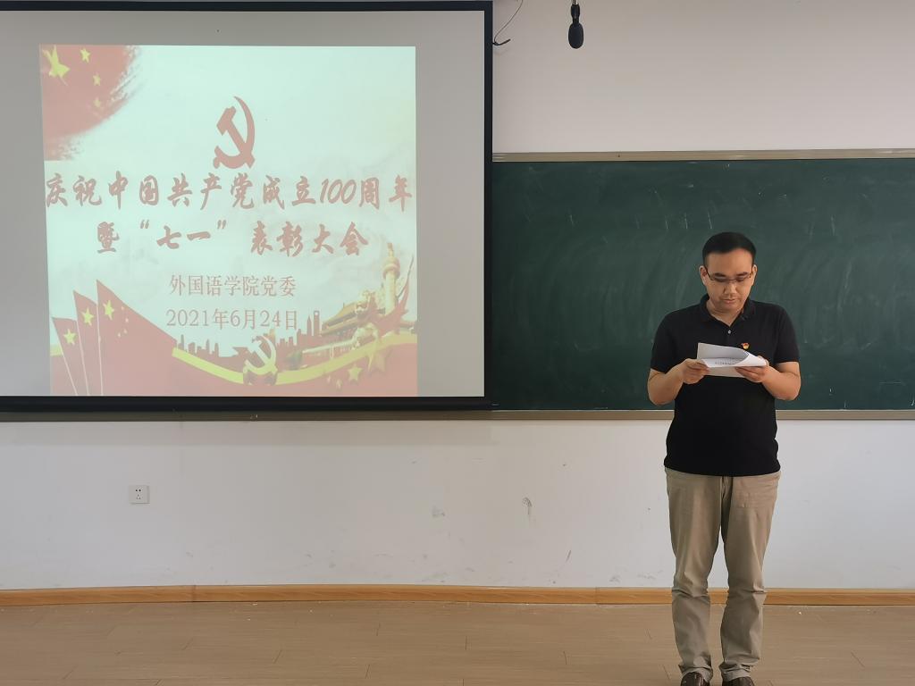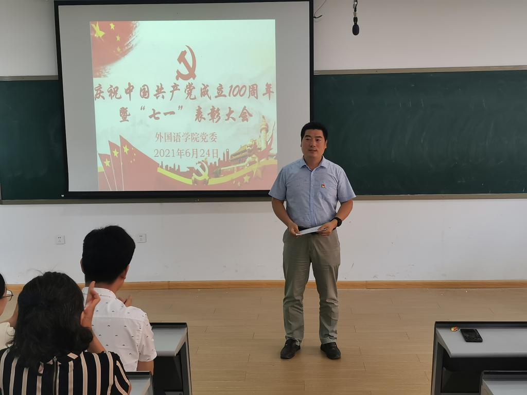 公司党委组织委员祁胜利向全体党员传达了升达党发【2021】18号文件《关于调整二级党组织设置的通知》以及外国语党发【2021】1号《关于成立中共太阳成集团tyc33455cc委员会的通知》两个文件。