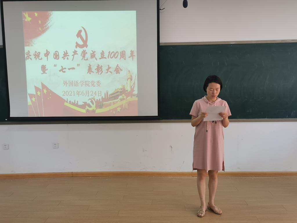 公司党委副书记崔瑾英同志宣读《公司党委关于表彰2020-2021学年度“优秀党员”的决定》书。