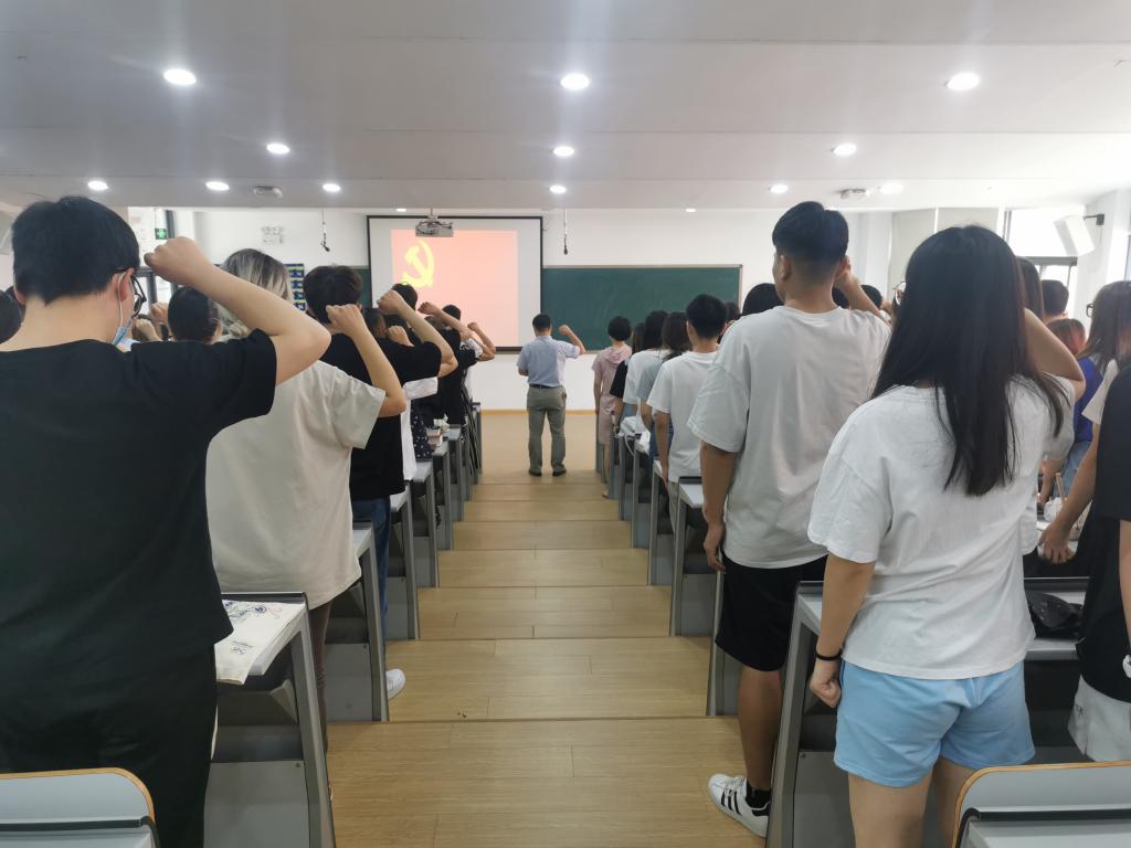 在庄严肃穆的国际歌之后,在党委书记石皓召同志带领下,全体师生党员面向党旗,重温入党誓词,全体党员仪态端庄严肃,语言铿锵有力,深深的表达了对党的热爱和对马列主义的坚定信仰。