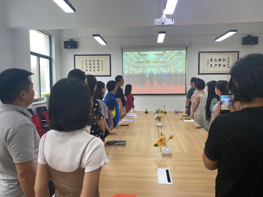 在“七一勋章”颁授仪式的直播过程中,公司员工也高度关注直播盛况,并在宿舍通过电脑或手机客户端进行了观看。